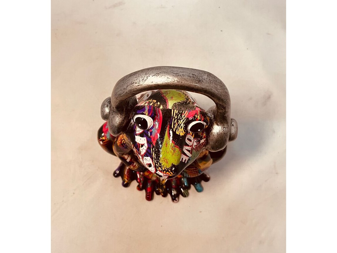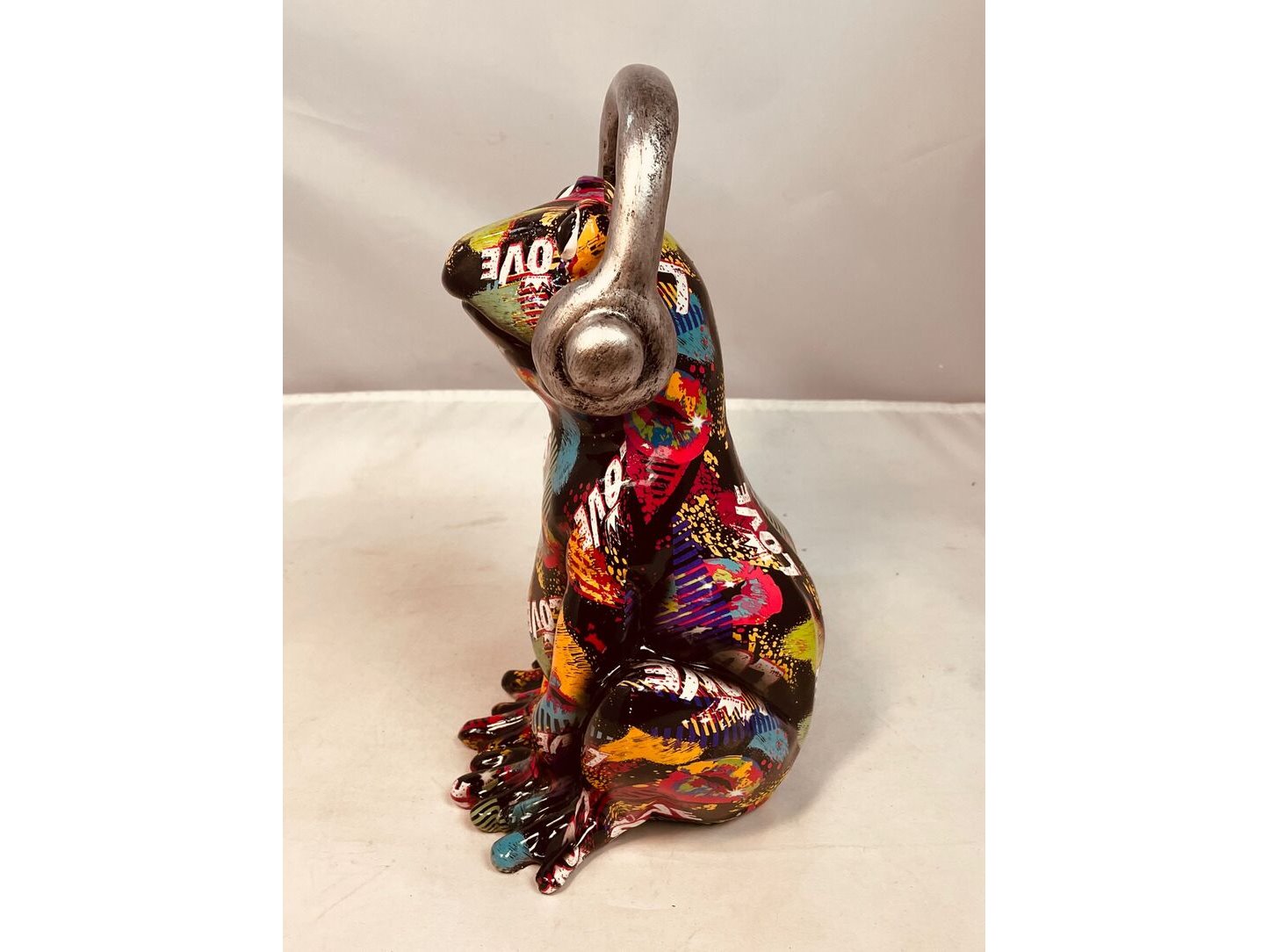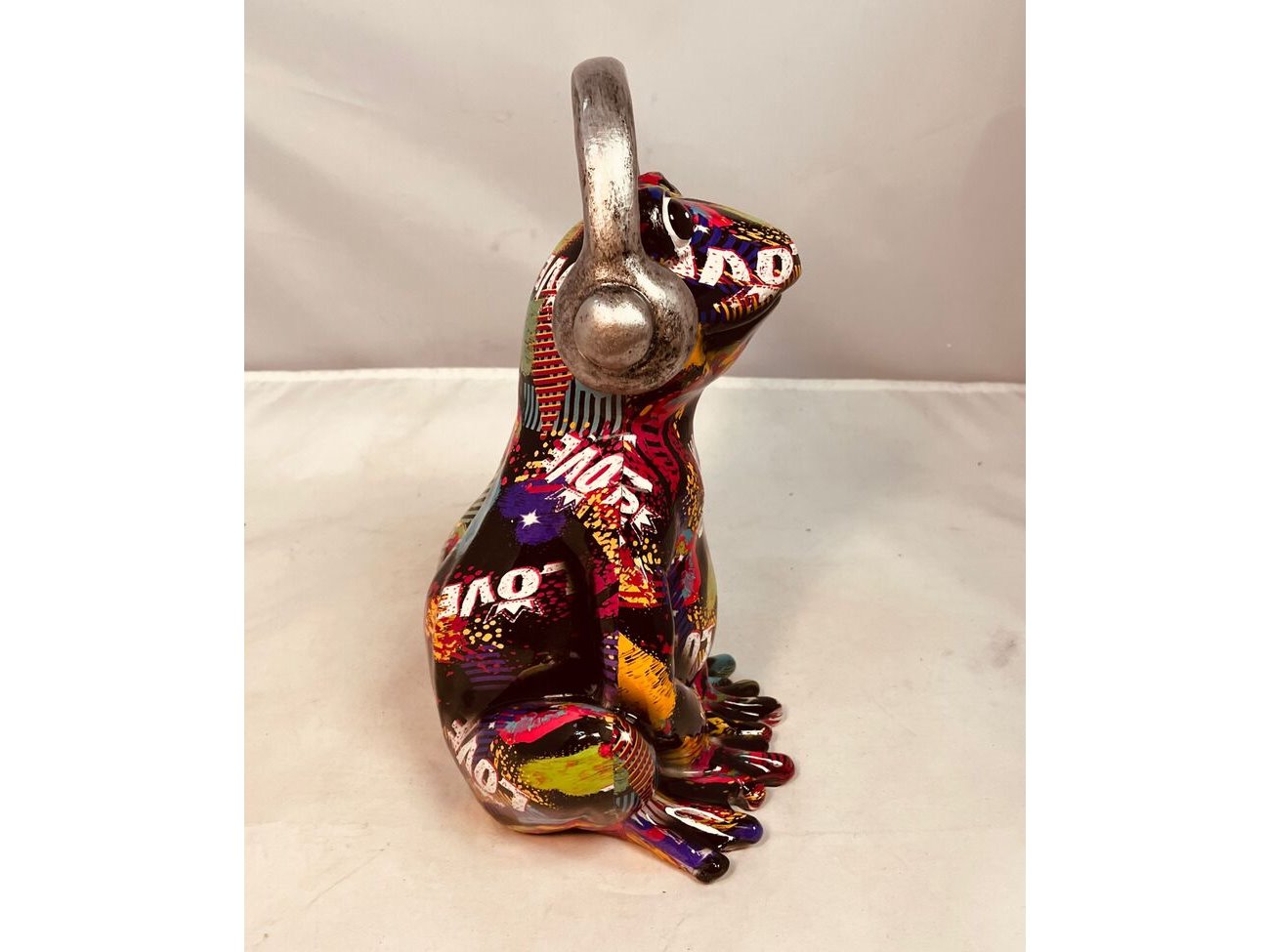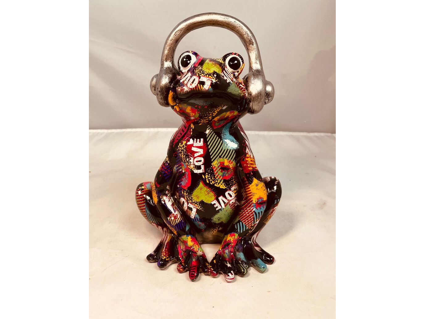 Product: Gedecoreerd kikker sculptuur Afmeting: 27cm x 17cm x 12cm Conditie: Nieuw Specificaties: Gedecoreerd kikker sculptuur