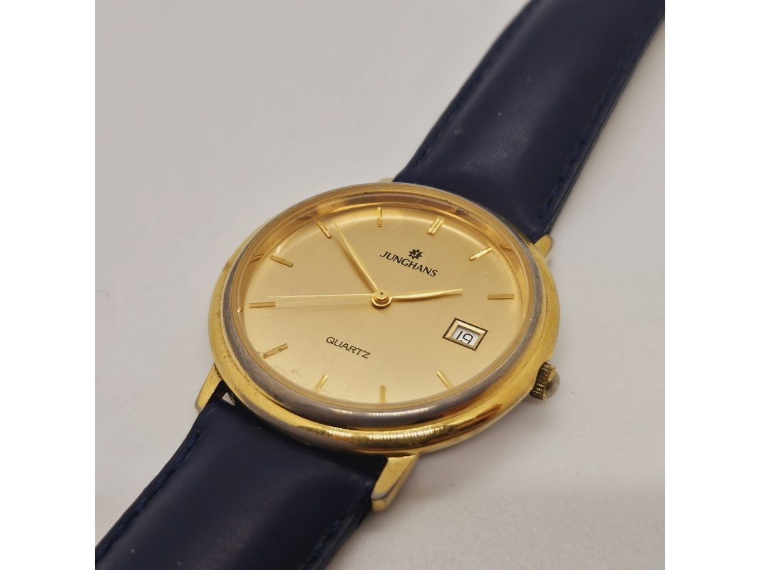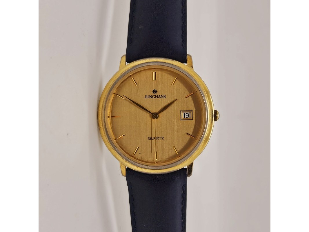 Product: Junghans goudkleurig herenhorloge Afmeting: 36mm Conditie: Gebruikt Specificaties: Uurwerk loopt goed. Dit betreft een tweedehands item met sporen van gebruik.