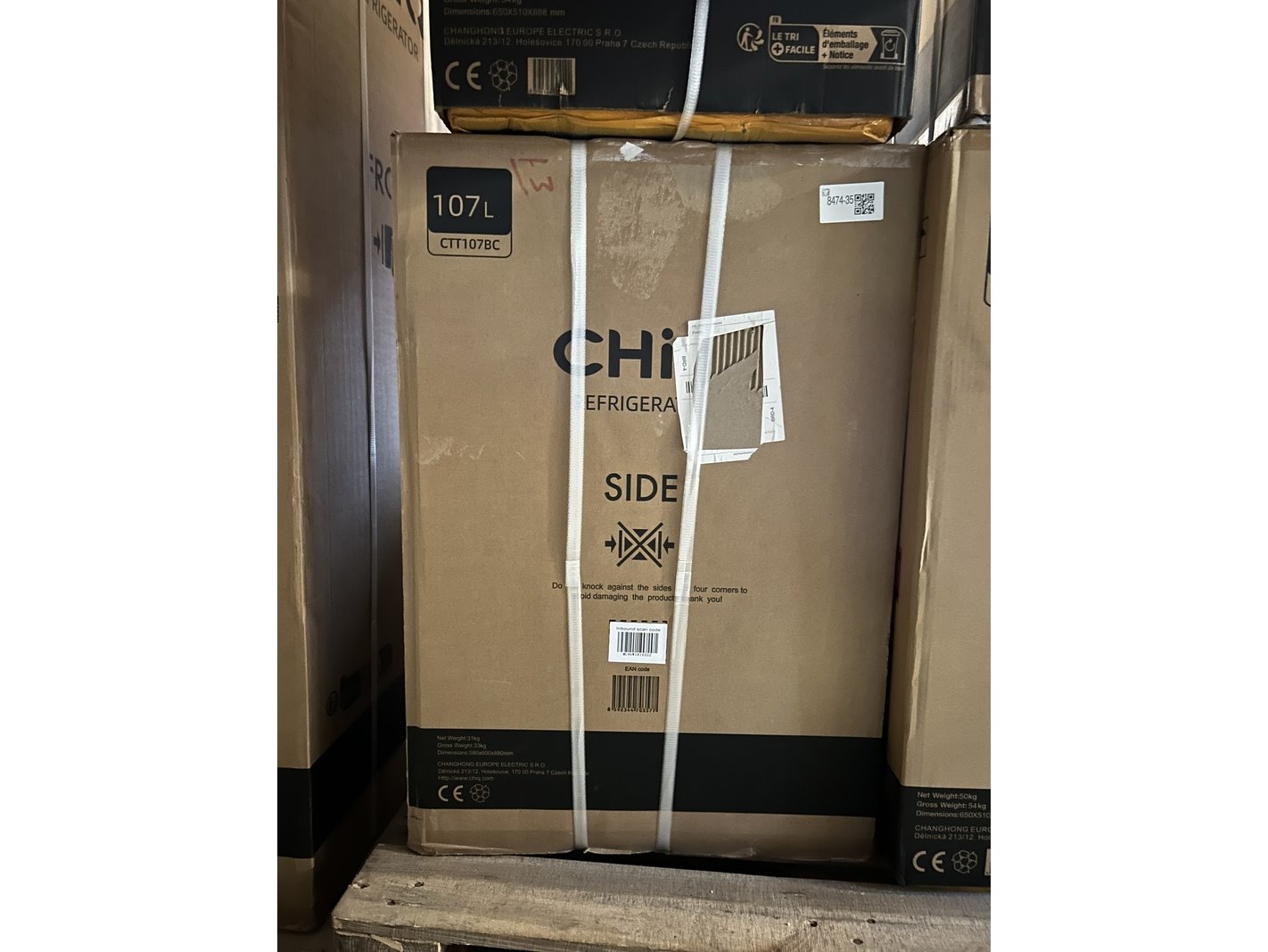 Merk: CHiQ Product: Koel-vriescombinatie 107 liter Afmeting: bxhxd 550x850x560 mm Conditie: nieuw Specificaties: De bezorg- en afhandelingskosten voor deze kavel bedragen €39,95 exclusief btw.