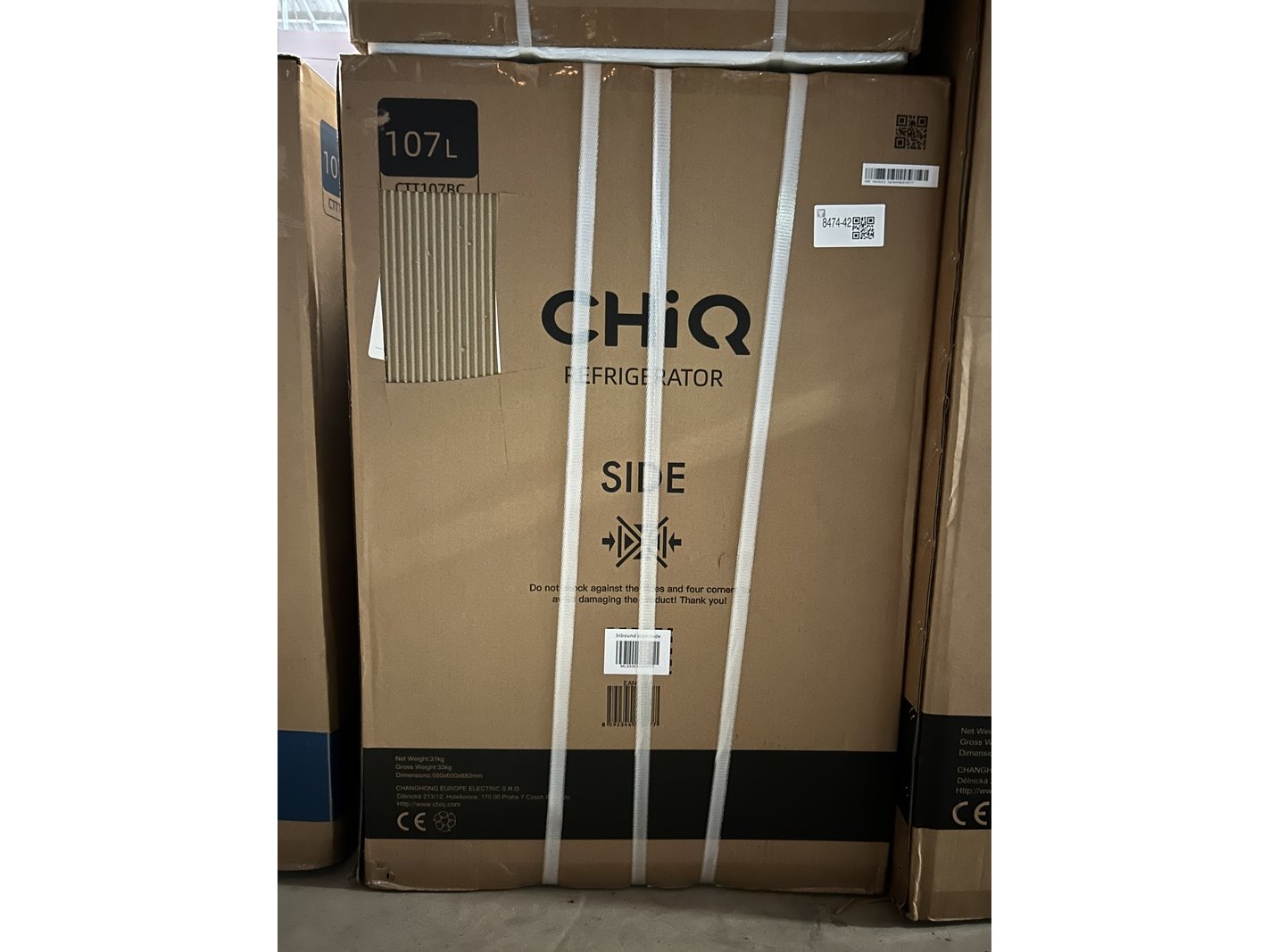 Merk: CHiQ Product: Koel-vriescombinatie 107 liter Afmeting: bxhxd 550x850x560 mm Conditie: nieuw Specificaties: De bezorg- en afhandelingskosten voor deze kavel bedragen €39,95 exclusief btw.