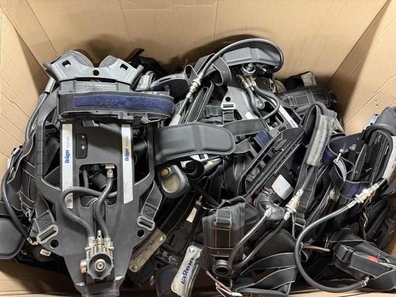 Merk: Dräger Product: ademluchttoestellen Conditie: gebruikt Specificaties: Technische gegevens Toevoerdruk: 0 - 300 bar Middendruk: 7,5 bar Uitvoerstroom: 1.000 l/min Activeringsdruk (pneumatische fluit): 50 - 60 bar Geluidsniveau (pneumatische fluit): 90 dBA Bewegingsloos hoofdalarm: 102 tot 112 dBA (gemeten op 250 mm) Batterij: 365 uur normaal gebruik Bedrijfstemperatuur: -30 tot +60 °C inclusief ca. 30 batterijen Uit bedrijf genomen vanwege nieuw apparatuur