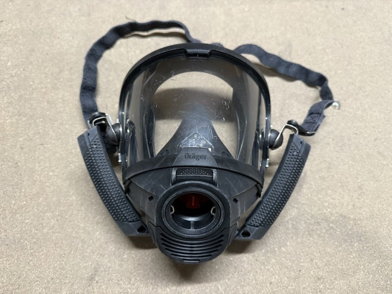 Merk: Dräger Product: Volgelaatsmasker Conditie: gebruikt Specificaties: Technische gegevens Materiaal: EPDM-kunststof (maskerlichaam), condensvrije polycarbonaat (lens) Gewicht: ca. 600 g (zonder filter) Voorzien van: • 180° hoek kijkvenster • Dubbel afdichtingsfram Uit bedrijf genomen vanwege nieuw apparatuur