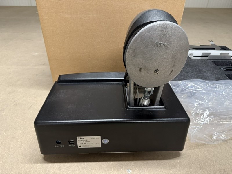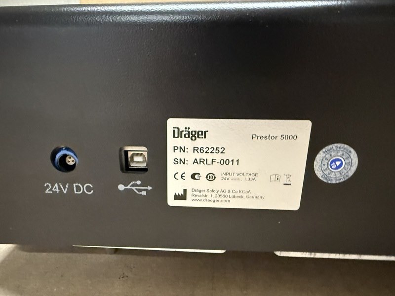 Merk: Dräger Product: druktest apparaat tbv volgelaatmasker Conditie: gebruikt Specificaties: Gegevens: Merk: Dräger Model: Prestor 5000 Partnummer (PN): R62252 Serienummer (SN): ARLE-0005 Voedingsspanning: 24 V Stroom: 1,33 A Conformiteit: CE Fabrikant: Dräger Safety AG & Co. KGaA, Lübeck (Duitsland) Uit bedrijf genomen vanwege nieuw apparatuur