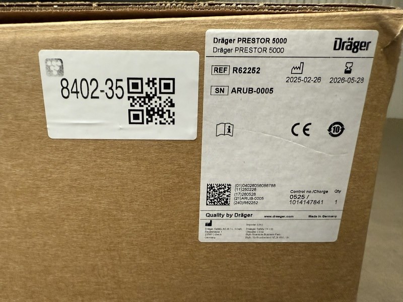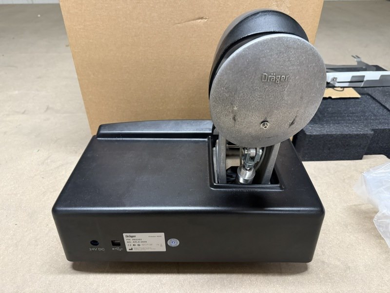 Merk: Dräger Product: druktest apparaat tbv volgelaatmasker Conditie: gebruikt Specificaties: Gegevens: Merk: Dräger Model: Prestor 5000 Partnummer (PN): R62252 Serienummer (SN): ARLE-0005 Voedingsspanning: 24 V (230V stekker aanwezig) Stroom: 1,33 A Conformiteit: CE Fabrikant: Dräger Safety AG & Co. KGaA, Lübeck (Duitsland) Uit bedrijf genomen vanwege nieuw apparatuur
