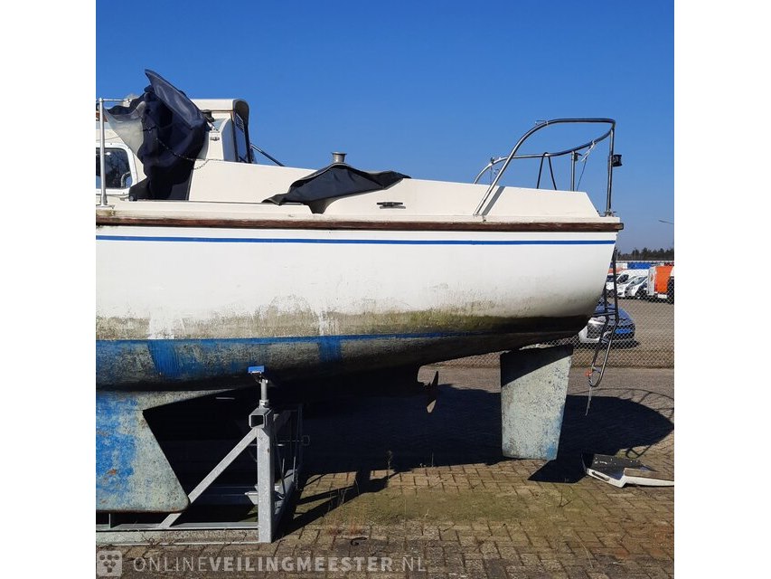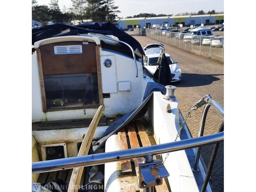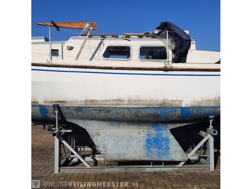 Product: Zeilboot Afmeting: LxBxH ca. 800x260x300 cm. Conditie: Gebruikt Specificaties: Inboard motor, type en merk onbekend. Zonder mast en toebehoren. Technische staat en compleetheid onbekend. Exclusief bootbok.