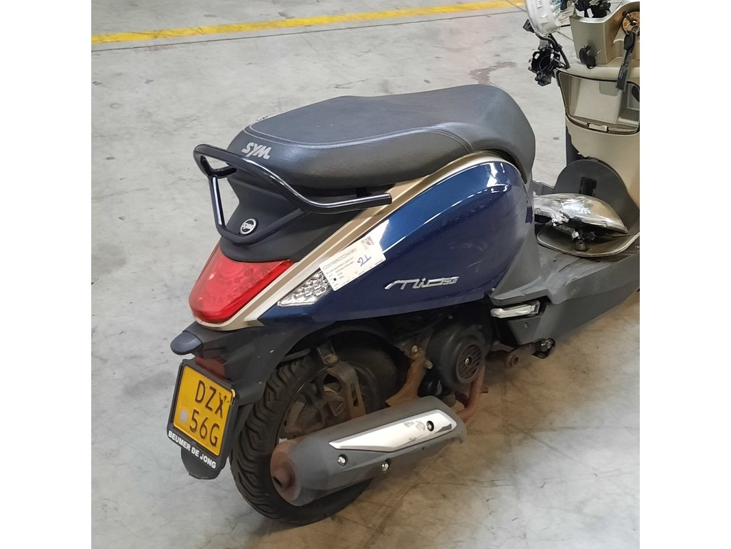 Merk: SYM Product: Bromscooter BouwJaar: 2020 Conditie: gebruikt Specificaties: Kenteken: DZX-56-G Bouwjaar: 2020 Eerste toelating nationaal: 18-11-2020 Brandstof: benzine Afgelezen tellerstand: 4793 mi Aantal sleutels: 1 Start: Nee, accu leeg Waargenomen gebreken: Diverse beschadigingen rondom De kappen hebben diverse beschadigingen Diverse kappen ontbreken