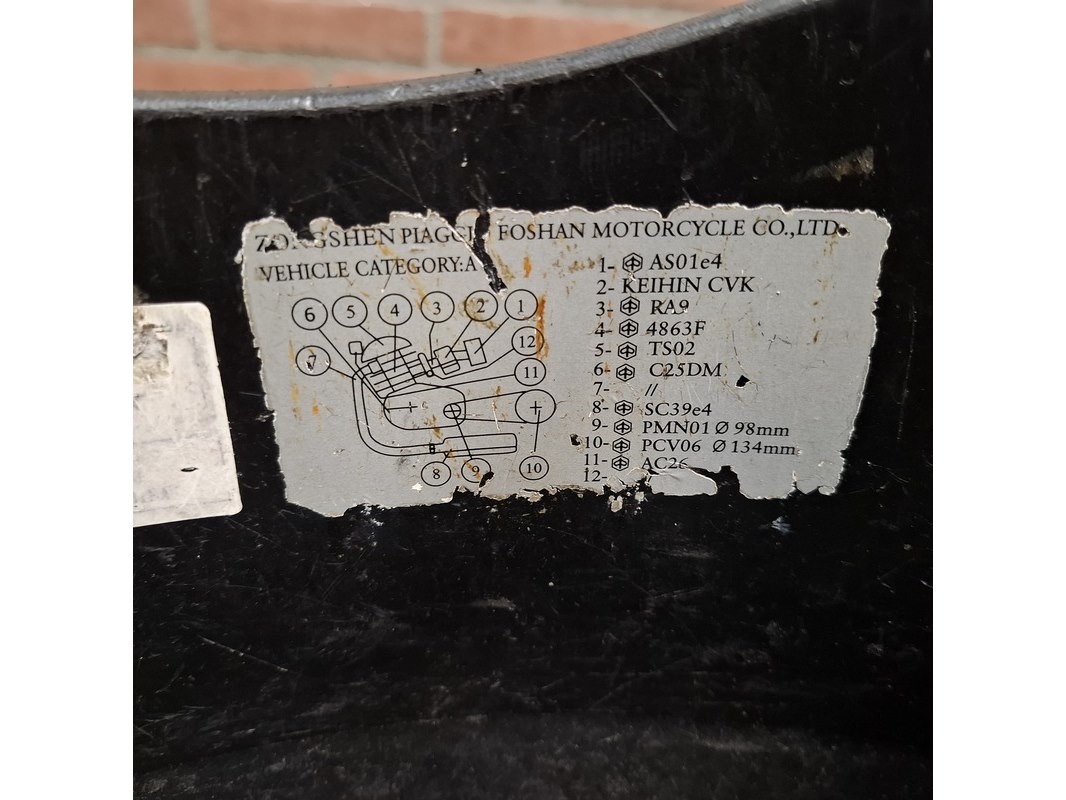 Merk: Piaggio Product: Snorscooter BouwJaar: 2015 Specificaties: Kenteken: F-274-ZS Bouwjaar: 2015 Eerste toelating nationaal: 31-01-2015 Brandstof: benzine Afgelezen tellerstand: 7.760 Aantal sleutels: 1 Start: Nee Opties e.d. Windscherm Valbeugels Waargenomen gebreken Gebruikssporen rondom Windscherm is eraf, bevestigingsbeugels zitten los