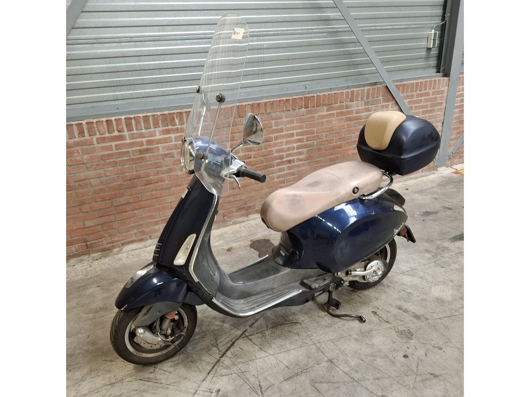 Merk: Piaggio Product: Snorscooter BouwJaar: 2014 Conditie: gebruikt Specificaties: Kenteken: F-860-TG Bouwjaar: 2014 Eerste toelating nationaal: 18-09-2014 Brandstof: benzine Afgelezen tellerstand: 36.887km Aantal sleutels: 2 Start: neen Opties e.d. Windscherm Bagagerek met koffer Waargenomen gebreken: Tip van linker remhendel Vergrendeling van zadel defect Gebruikssporen rondom.