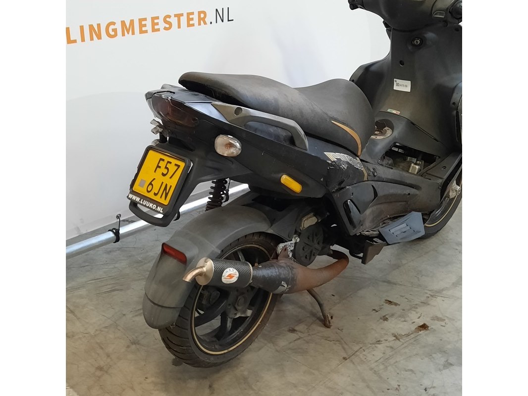 Merk: Gilera Product: Bromscooter BouwJaar: 2012 Conditie: gebruikt Specificaties: Kenteken: F-576-JN Bouwjaar: 2012 Eerste toelating nationaal: 27-06-2012 Brandstof: benzine Afgelezen tellerstand: Onbekend Aantal sleutels: 0 Start: Nee, geen sleutel Opties e.d. Waargenomen gebreken: Gebruikssporen rondom. Voorwiel zit vast, rolt niet Diverse beschadigde kappen en roestige delen