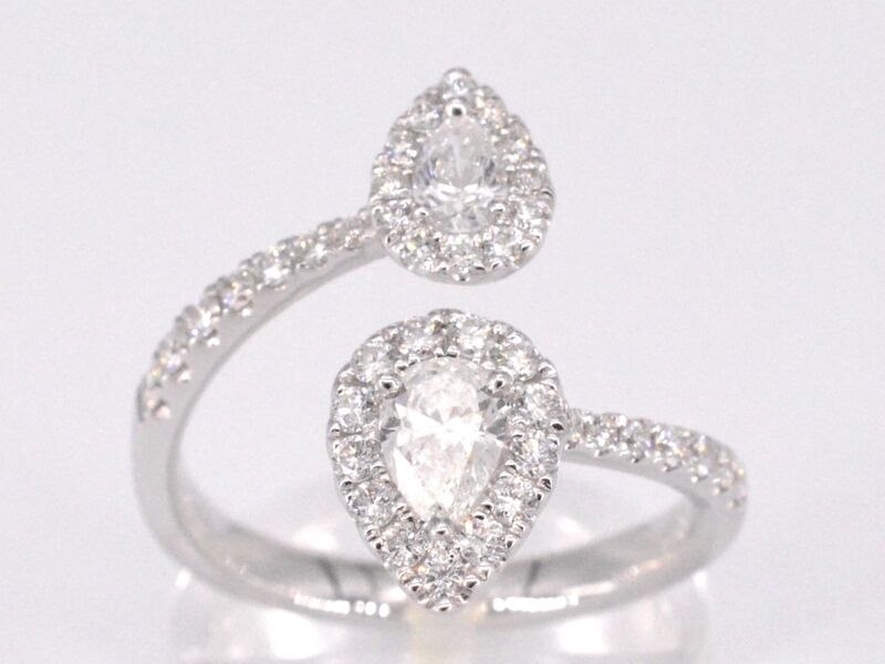 Product: Witgouden rijring met pearshape en Briljant geslepen diamanten 1.25 carat Specificaties: Diamant: Natuurlijk Slijpvorm: Briljant geslepen Gewicht (carat): 0.75 carat Kleur: F-G Zuiverheid: VS Slijpkwaliteit: Zeer mooi Slijpvorm: Peer vorm geslepen Gewicht (carat): 0.50 carat Kleur: F-G Zuiverheid: VS Slijpkwaliteit: Very good Juweel: Ring Gewicht: 3.3 gram Ringmaat (op maat gemaakt*): 53 (17 mm) Materiaal: 18K goud (750) Conditie: Nieuw Verpakking: Luxe sieradendoos Toelichting: De kwaliteit is overgenomen van het rapport behorend bij item. De waardebepaling is een beoordeling van een gecertificeerde diamantair, gebaseerd op consumentenprijzen. Consumentenprijs: € 9.293,-