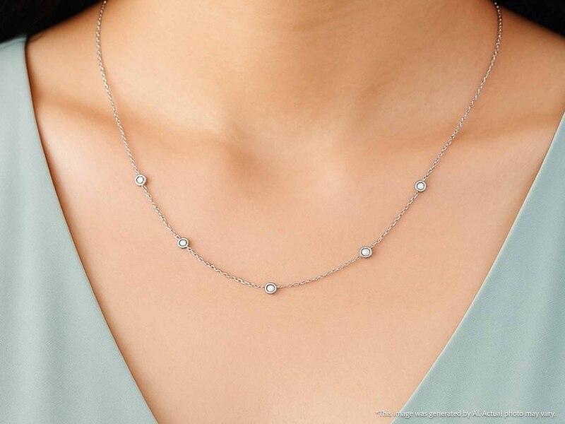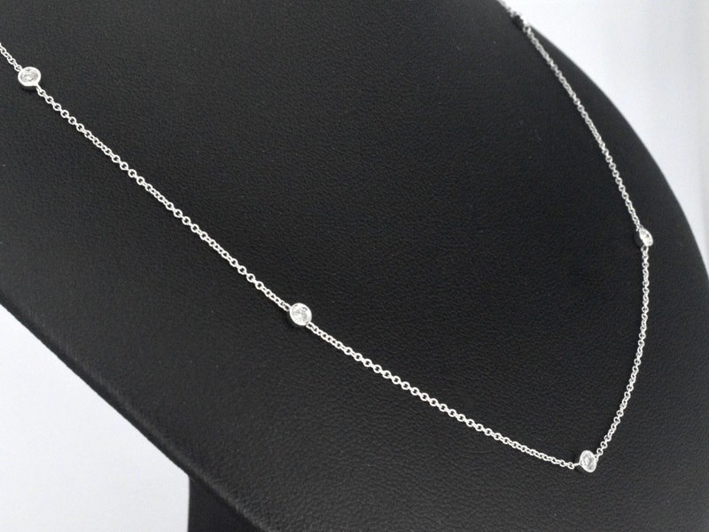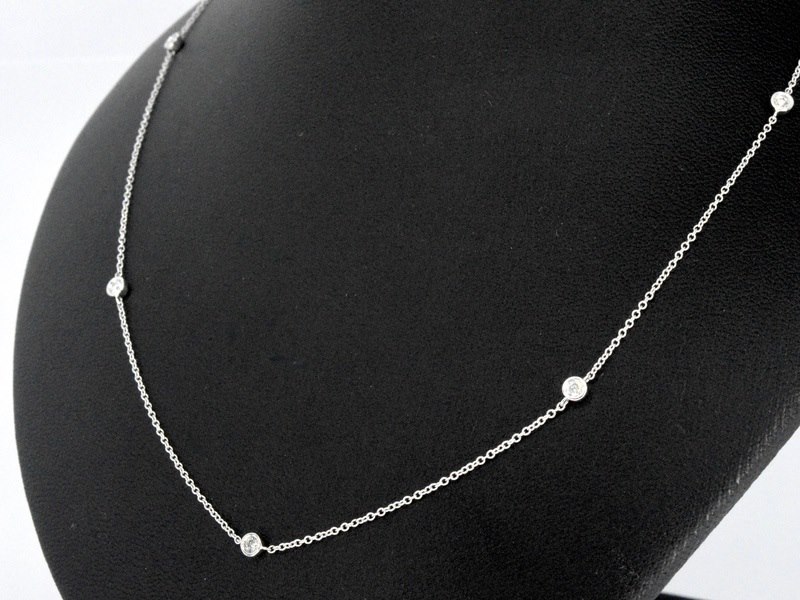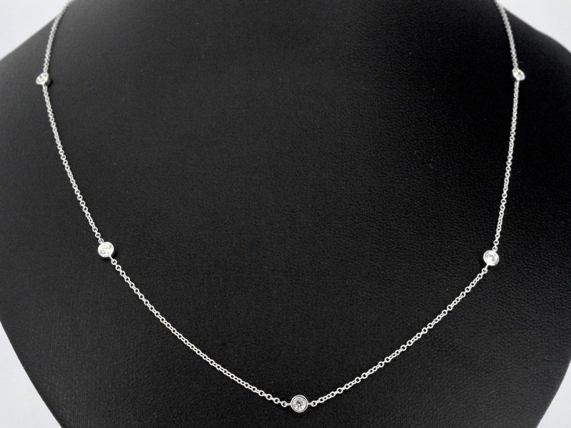 Product: Witgouden halscollier met natuurlijke diamanten Specificaties: Diamant: Natuurlijk Aantal: 5 stuks Slijpvorm: Briljant geslepen Gewicht (carat): 0.20 carat Kleur: F-G Zuiverheid: SI-P Slijpkwaliteit: Zeer mooi Juweel: Halsketting Gewicht: 1 gram Afmetingen/lengte: 45 cm Materiaal: 14 karaat (585) Conditie: Nieuw Verpakking: Luxe sieradendoos Toelichting: De kwaliteit is overgenomen van het rapport behorend bij item. De waardebepaling is een beoordeling van een gecertificeerde diamantair, gebaseerd op consumentenprijzen. Consumentenprijs: € 1.925,-