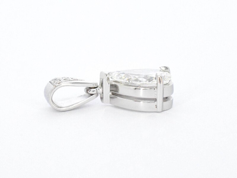 Product: Grote peer shape diamant in een witgouden hanger van 2.01 carat Specificaties: Diamant: Natuurlijk Aantal: 1 stuk Slijpvorm: pear shape Gewicht (carat): 2.01 carat Kleur: F Zuiverheid: SI1 Certificaat: IGI Certificaat nummer: 181593200 Diamant (secundair): Diamanten: In de Hanger Slijpvorm: Briljant geslepen Gewicht (carat): 0.10 carat Kleur: F-G Zuiverheid: VS Juweel: Hanger (excl. ketting) Gewicht: 2.7 gram Materiaal: 18K goud (750) Conditie: Nieuw Verpakking: Luxe sieradendoos Toelichting: De kwaliteit is overgenomen van het rapport behorend bij item. De waardebepaling is een beoordeling van een gecertificeerde diamantair, gebaseerd op consumentenprijzen. Consumentenprijs: € 63.000,-