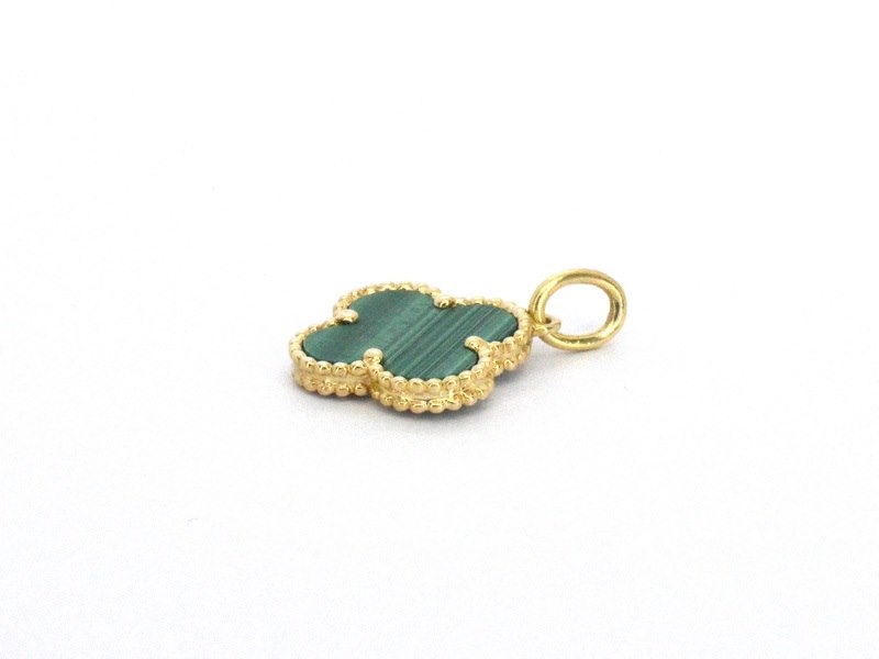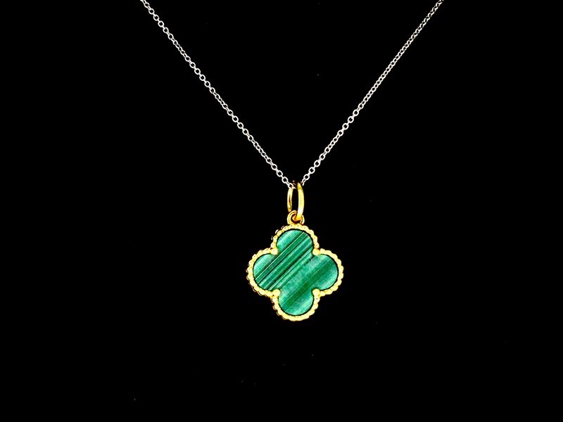 Product: Gouden klaver vier hanger met groene malachiet Specificaties: Edelsteen: Natuurlijke Malachiet Aantal: 1 stuk Kleur: Groen Juweel: Hanger (excl. ketting) Gewicht: 1.8 gram Afmetingen/lengte: 2.1 x 1.5 cm Materiaal: 18K goud Conditie: Nieuw Verpakking: Luxe sieradendoos Toelichting: De kwaliteit is overgenomen van het rapport behorend bij item. De waardebepaling is een beoordeling van een gecertificeerde diamantair, gebaseerd op consumentenprijzen. Extra informatie: Let op: dit 18K gouden sieraad met hoge kwaliteit diamanten is geen orgineel merksieraad Consumentenprijs: € 1.925,-