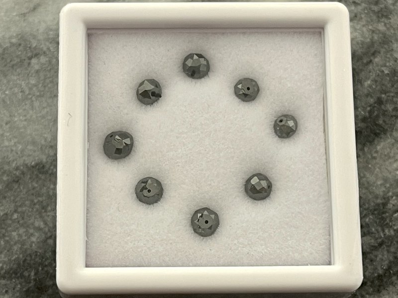 Product: Diamant - 3.40 carat zwarte natuurlijke diamant Specificaties: Diamant: Natuurlijk Aantal: 8 stuks Slijpvorm: Rond gefaceteerd Gewicht (carat): 3.40 carat Kleur: Zwart (enhanced) Zuiverheid: Opaak Slijpkwaliteit: Goed Extra informatie: Geboord Conditie: Nieuw Verpakking: Edelsteendoosje Toelichting: De kwaliteit is overgenomen van het rapport behorend bij item. De waardebepaling is een beoordeling van een gecertificeerde diamantair, gebaseerd op consumentenprijzen. Consumentenprijs: € 1.500,-