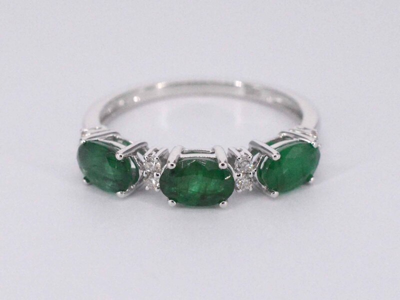 Product: Witgouden ring met diamanten en smaragd Specificaties: Diamant: Natuurlijk Slijpvorm: Briljant geslepen Gewicht (carat): 0.10 carat Kleur: F-G Zuiverheid: SI-P Slijpkwaliteit: Zeer mooi Edelsteen: Smaragd Slijpvorm: Ovaal geslepen Gewicht (carat): 1.50 carat Juweel: Ring Gewicht: 2.5 gram Ringmaat (op maat gemaakt*): 54 (17.25 mm) Materiaal: 14 karaat (585) Conditie: Nieuw Verpakking: Luxe sieradendoos Toelichting: De kwaliteit is overgenomen van het rapport behorend bij item. De waardebepaling is een beoordeling van een gecertificeerde diamantair, gebaseerd op consumentenprijzen. Consumentenprijs: € 1.733,-