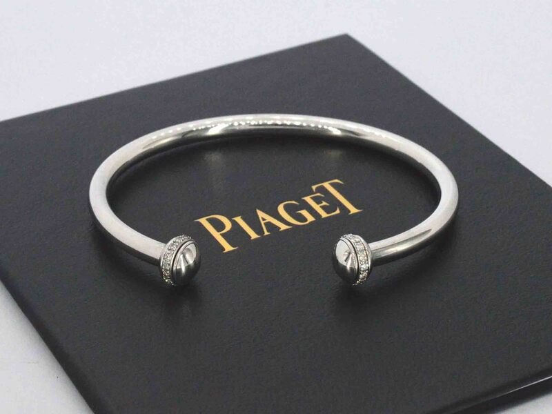 Product: Piaget - Possession model open bangle armband met diamanten Specificaties: Diamant: Natuurlijk Aantal: 30 stuks Slijpvorm: Briljant geslepen Gewicht (carat): 0.38 carat Extra informatie: Originele Piaget diamanten van hoge kwaliteit Juweel: Armband Merk: Piaget Model: Posession Serienummer: H21XXX Jaar: 2021 Gewicht: 13.6 gram Afmetingen/lengte: Maat: 17 Materiaal: 18k goud (750) Conditie: Zo goed als nieuw Verpakking: Origineel sieradendoos Toelichting: De kwaliteit is overgenomen van het rapport behorend bij item. De waardebepaling is een beoordeling van een gecertificeerde diamantair, gebaseerd op consumentenprijzen. Extra informatie: Komt met originele doos en papieren. Consumentenprijs: € 8.250,-