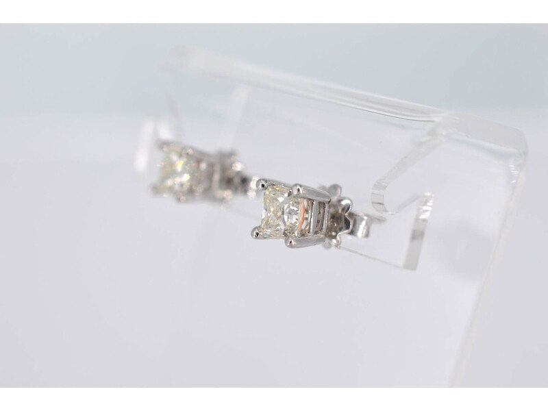 Product: Witgouden oorbellen met princess geslepen diamanten Specificaties: Diamant: Natuurlijk Aantal: 2 stuks Slijpvorm: prinses geslepen Gewicht (carat): 1.00 carat Kleur: F-G Zuiverheid: VVS Slijpkwaliteit: Exceptioneel Juweel: Oorbellen Gewicht: 2 gram Materiaal: 18K goud (750) Conditie: Nieuw Verpakking: Luxe sieradendoos Toelichting: De kwaliteit is overgenomen van het rapport behorend bij item. De waardebepaling is een beoordeling van een gecertificeerde diamantair, gebaseerd op consumentenprijzen. Consumentenprijs: € 13.500,-