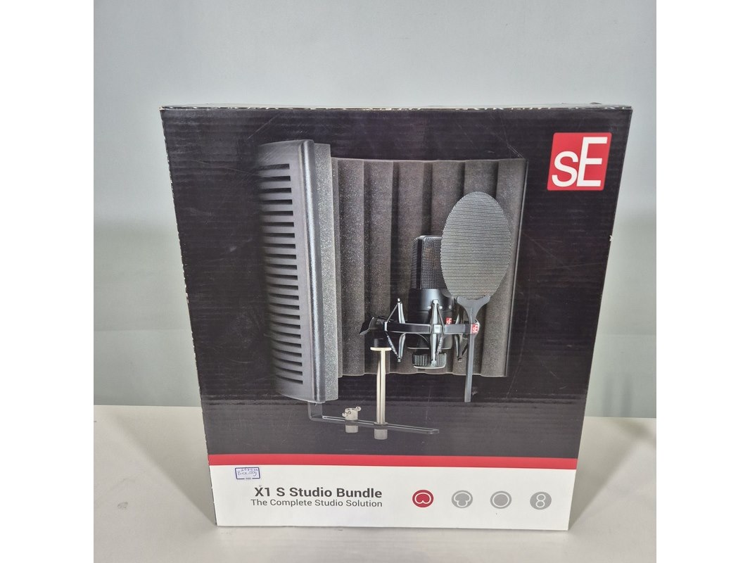 Merk: sE Electronics Product: Studio opname set Specificaties: Bestaande uit: 1x sE Electronics X1 S studio microfoon 1x sE Electronics XLR kabel 1x sE Electronics RF-X reflectiefilter 1x Vonyx standaard