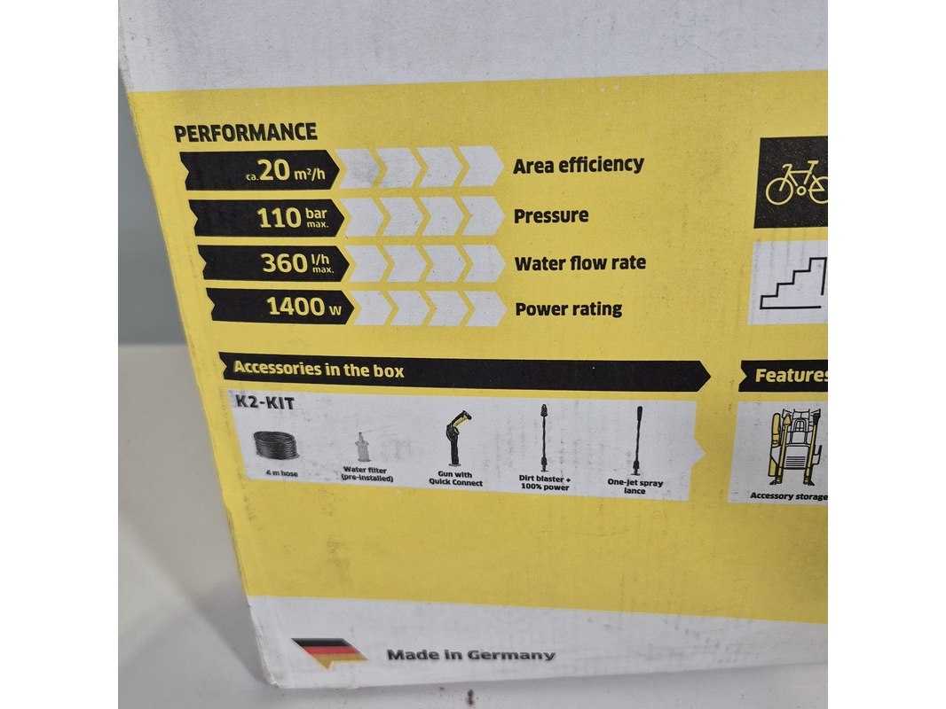 Merk: kärcher Product: Hogedrukreiniger Specificaties: 230V Doos is geopend.