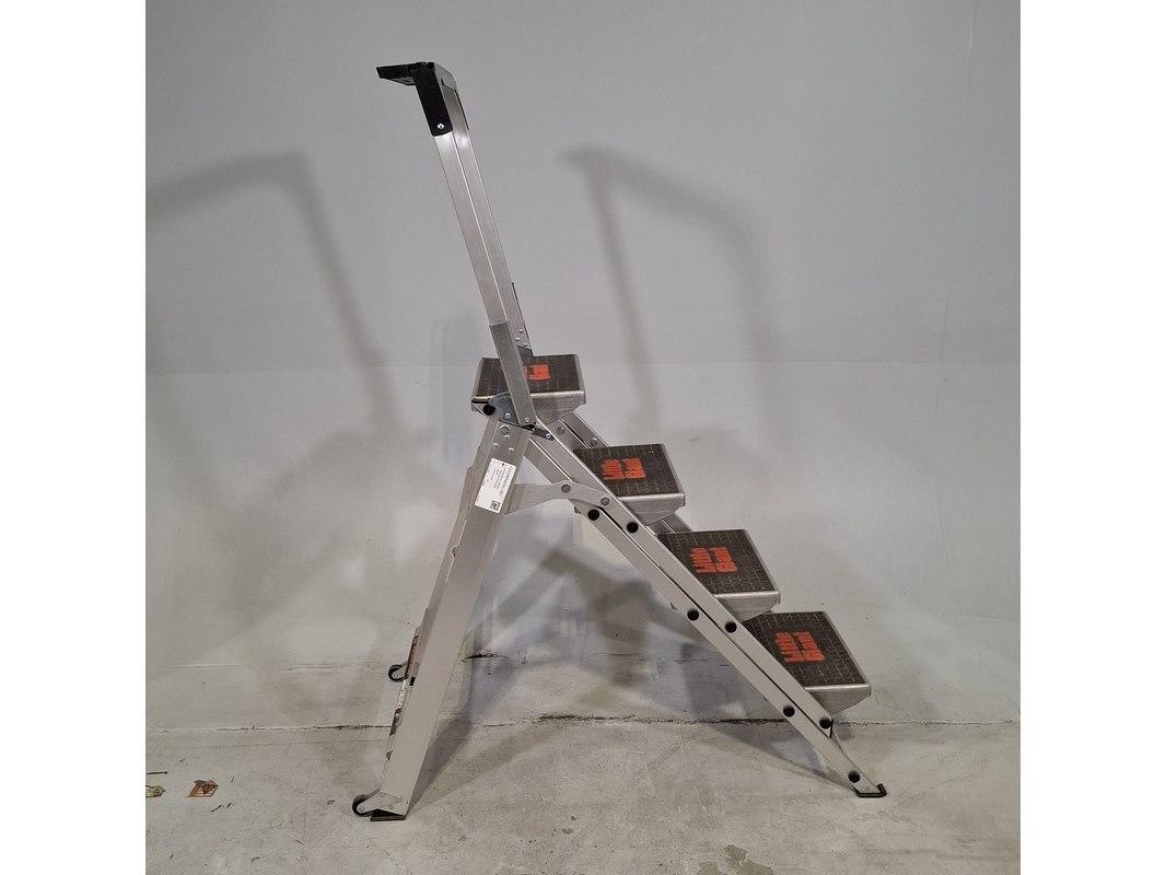 Merk: Little Giant Product: Werkplaatstrap 4 treeds Specificaties: Capaciteit: 150kg Eigen gewicht: 12kg