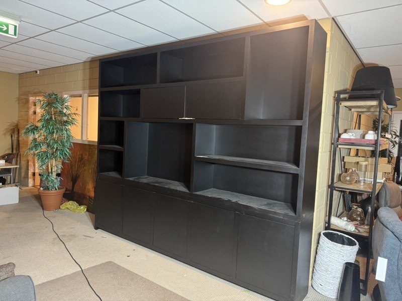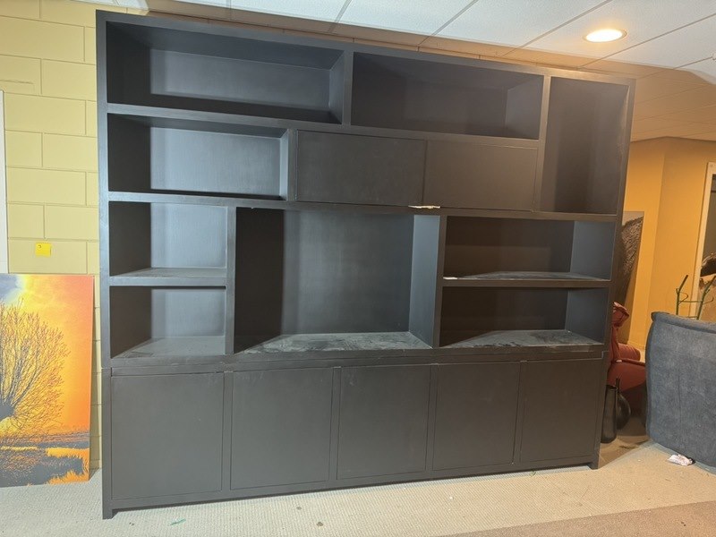 Product: Vakkenkast Kleur: zwart Afmeting: 300x40x250 cm Specificaties: Showmodel Showmodellen kunnen gebruikssporen en/of beschadigingen hebben. Voor een goed beeld kun je gebruik maken van de kijkdag.