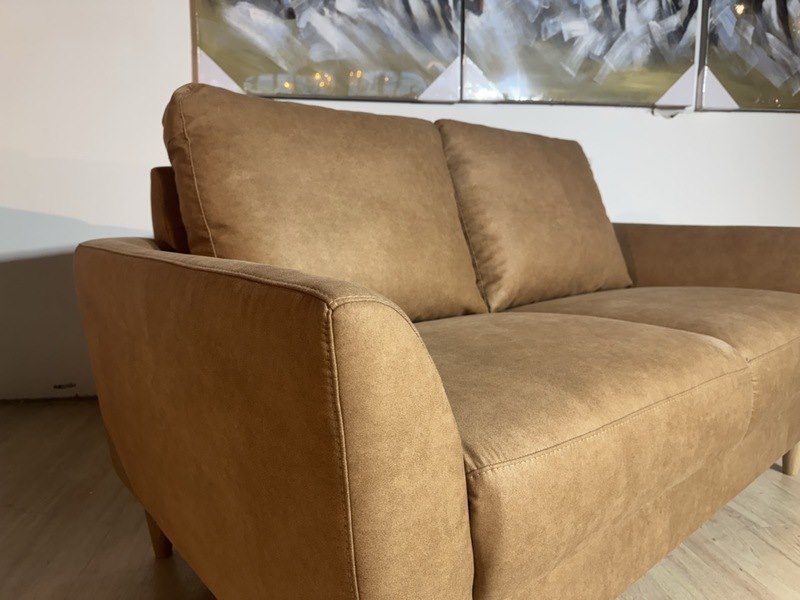 Product: 2-zits bank Kleur: cognac Materiaal: microvezelstof Afmeting: 150 cm Specificaties: Nieuw uit verpakking