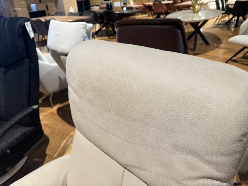 Merk: Hjort Knudsen Product: Relaxfauteuil Kleur: beige Materiaal: ecoleer Afmeting: M Conditie: gebruikt Specificaties: Retourproduct