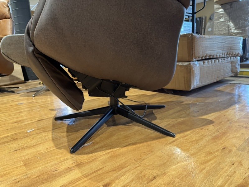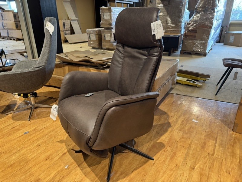 Relaxfauteuil, bruin leer, elektrisch verstelbaar, zwarte poot