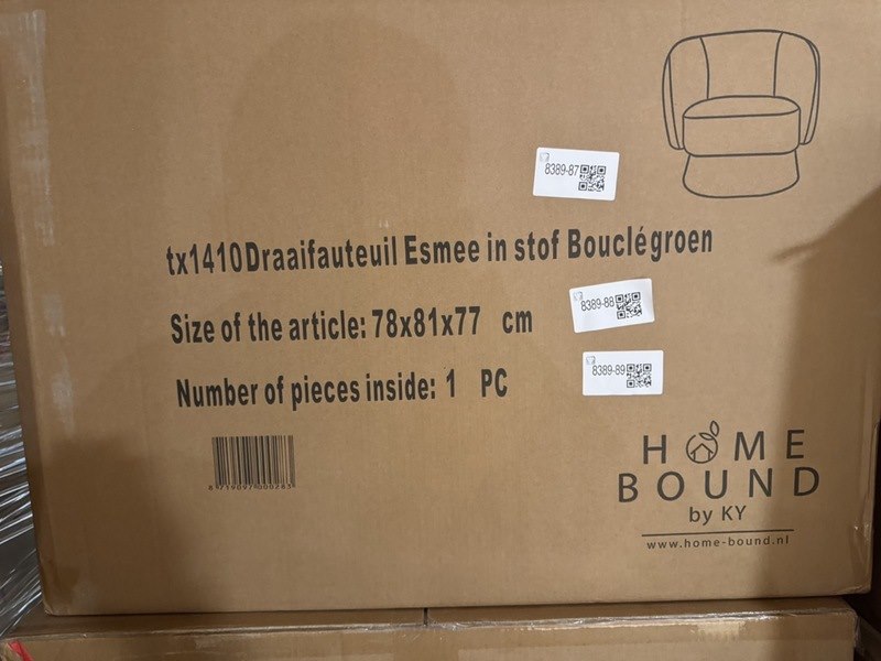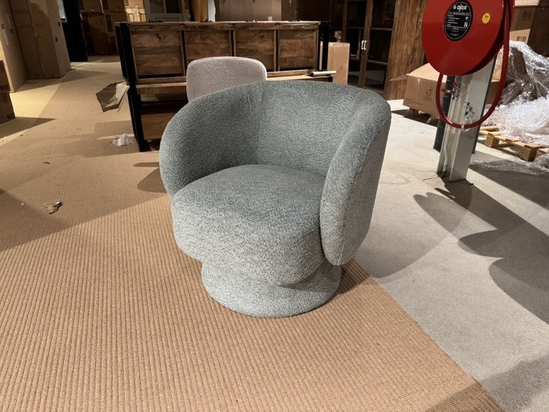 Merk: Home Bound by KY Product: Draaifauteuil Kleur: bouclégroen Materiaal: stof Afmeting: 78x81x77 cm Specificaties: Nieuw in verpakking