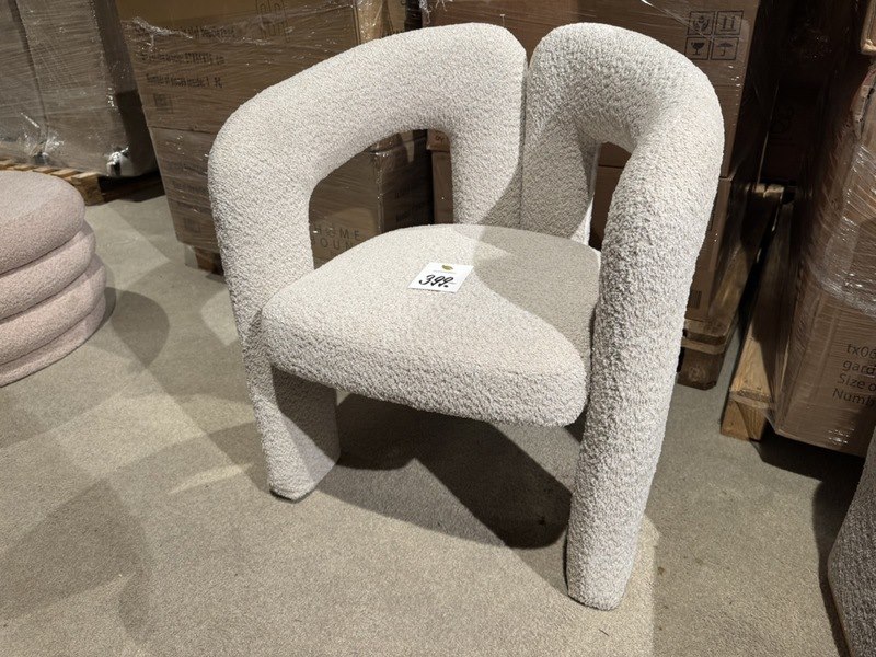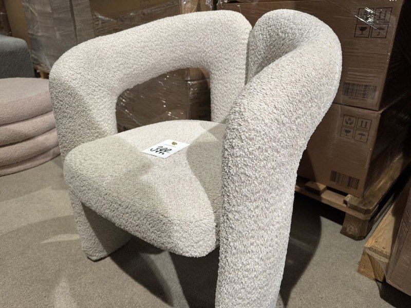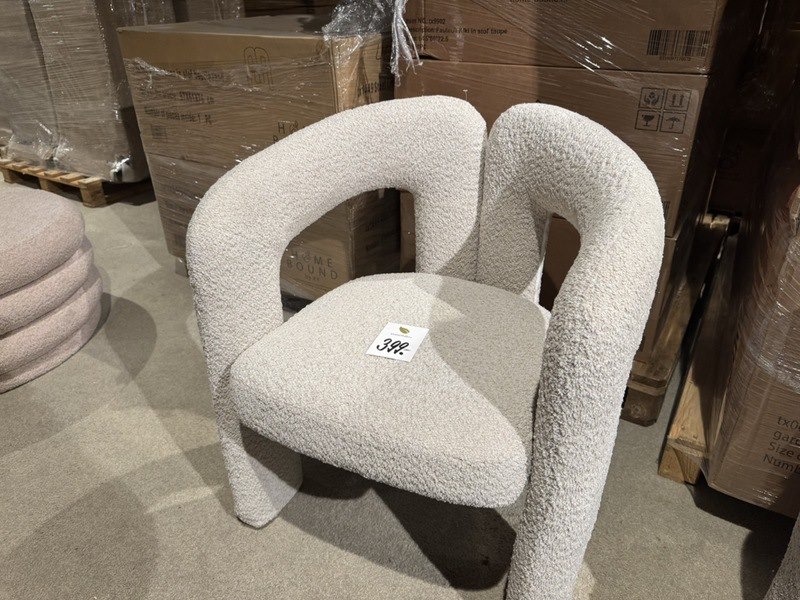 Product: Stoel Kleur: bouclé zand Materiaal: stof Specificaties: Nieuw in verpakking