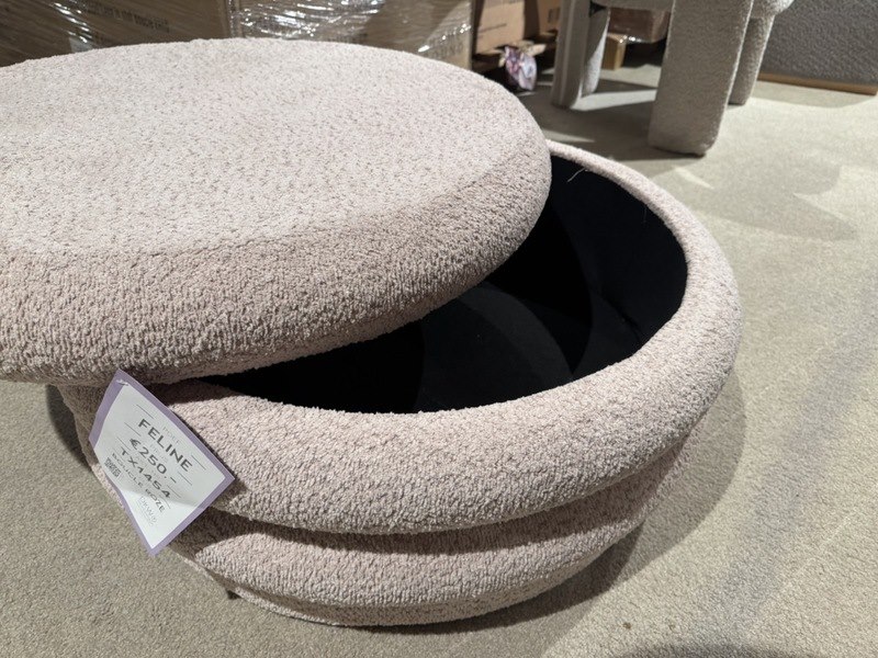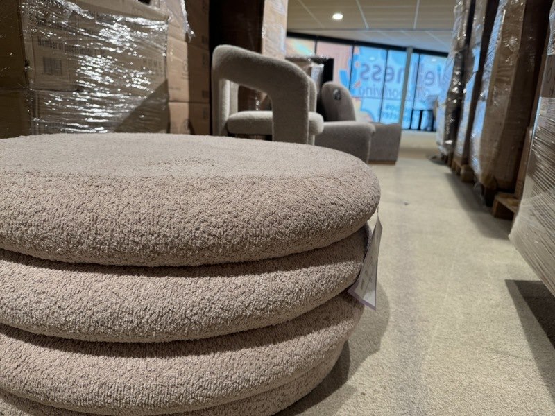 Merk: Home Bound by KY Product: Poef Kleur: boucé lila Materiaal: stof Afmeting: 79x79x38 cm Specificaties: Nieuw in verpakking