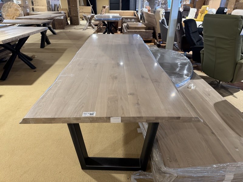 Eettafel, massief eiken, zwart metalen u-poot