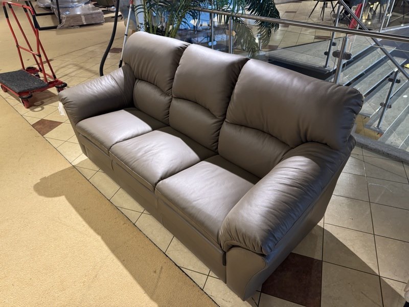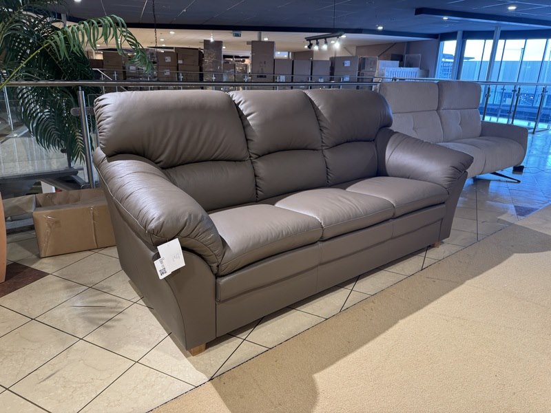 Product: 3-zits bank Kleur: taupe Materiaal: leer Afmeting: 210x87 cm Specificaties: Nieuw uit verpakking