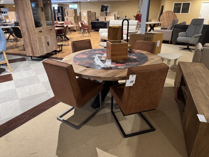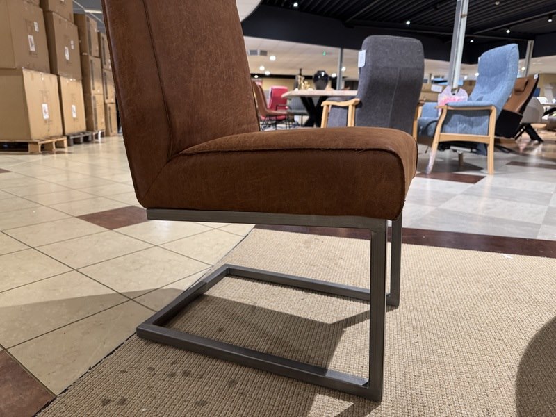 Product: Set van 4 eetkamerstoelen Kleur: cognac Materiaal: microvezelstof Specificaties: Showmodel Excl. tafel Showmodellen kunnen gebruikssporen en/of beschadigingen hebben. Voor een goed beeld kun je gebruik maken van de kijkdag.
