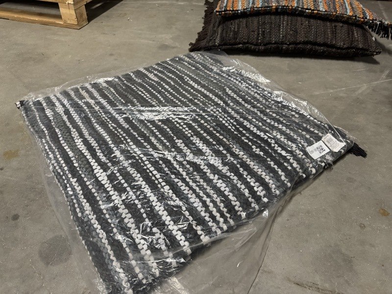Merk: Moods Product: Vloerkussen Kleur: wit/grijs/zwart Materiaal: leer Afmeting: 80x80 cm Specificaties: Nieuw in verpakking
