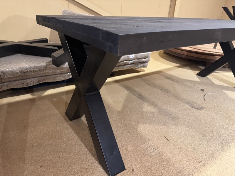 Eettafel, zwart mangohout, zwart metalen x-poot