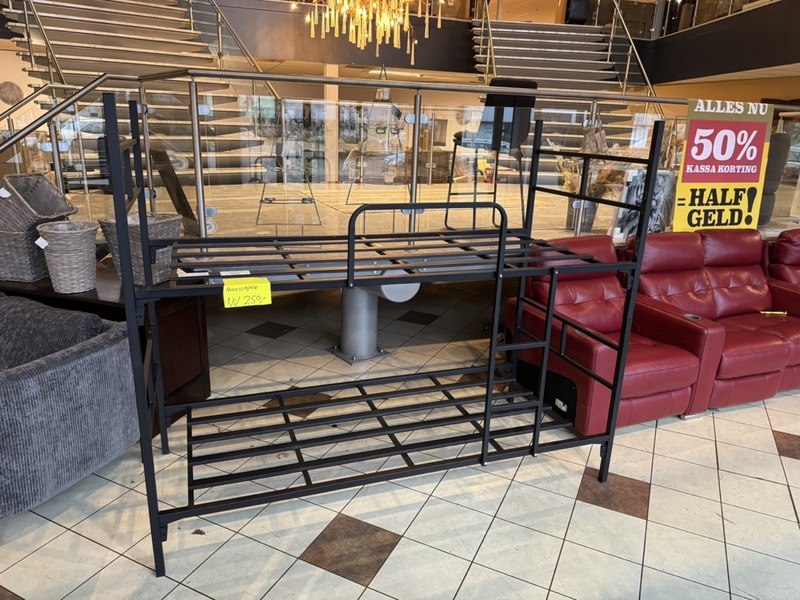 Product: Stapelbed Kleur: zwart Materiaal: metaal Afmeting: 200x90x170(h) cm Specificaties: Nieuw in verpakking