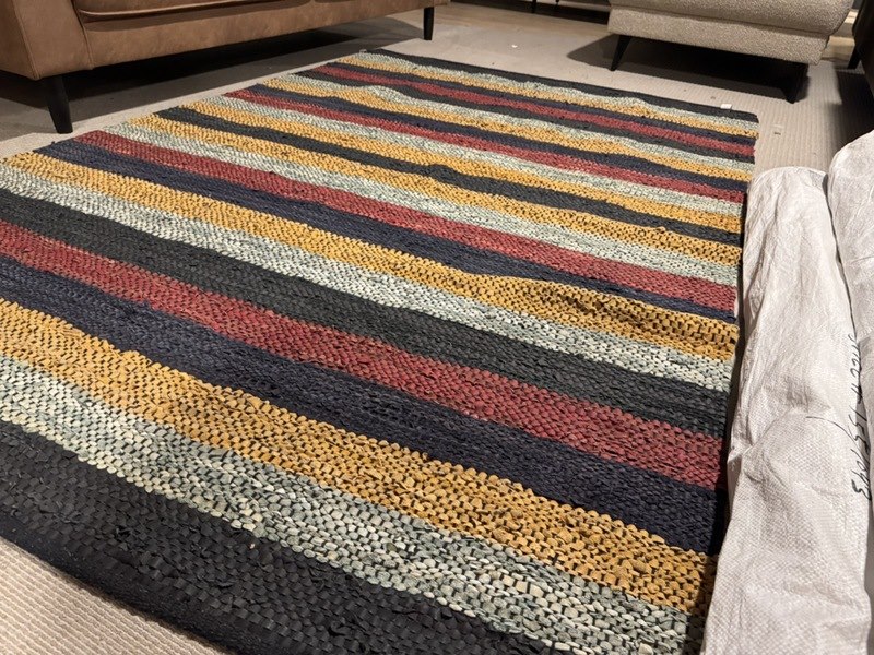 Merk: Moods Product: Karpet Kleur: meerkleurig Materiaal: leer, katoen Afmeting: 160x240 cm Specificaties: Nieuw in verpakking