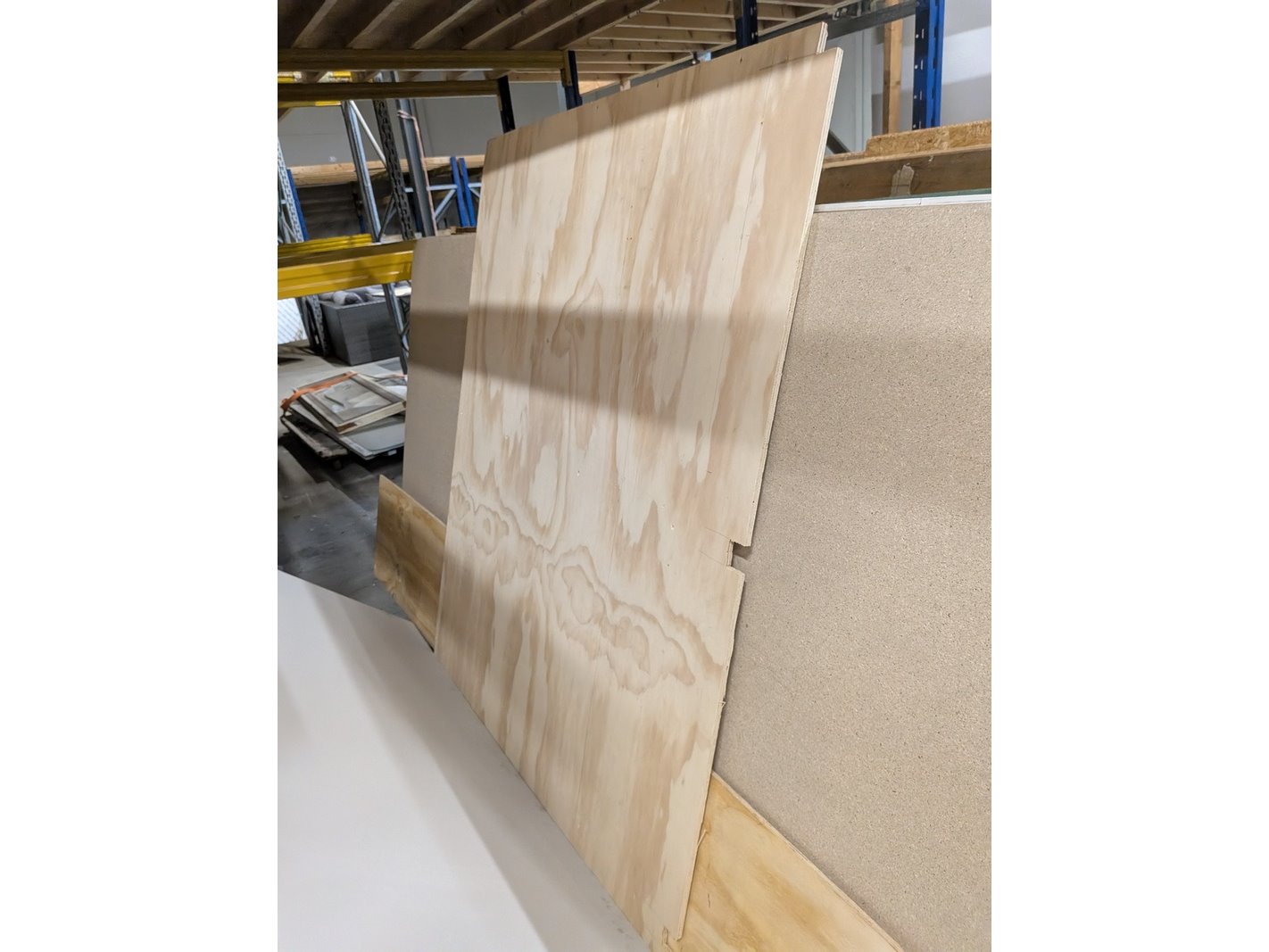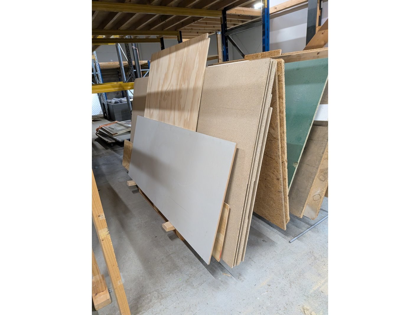 Product: Partij hout- en plaatmateriaal op 3x bok Afmeting: Diverse maten en soorten Specificaties: Max. afmeting lxb ca.251 x 125 cm Inclusief 3x houten bok