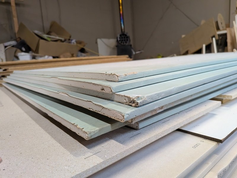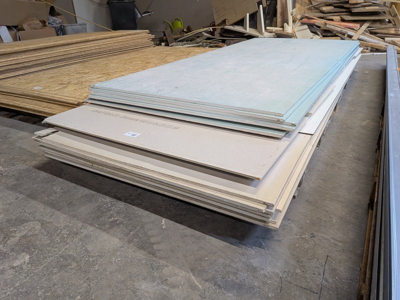 Product: Gipsplaat Specificaties: Bestaande uit: 7x gipsplaat Gyproc WR 12.5mm, (lxb) ca. 260 x 120 cm 11x gipsplaat Pregyplac AK 12.5mm, (lxb) ca. 320 x 120 cm Gedeeltelijk met transportschade
