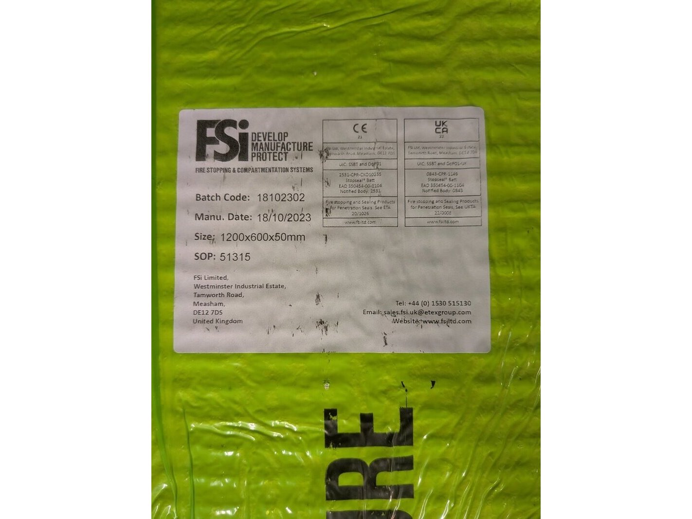 5x brandwerende plaat, fsi, stopseal coated batt, 2023