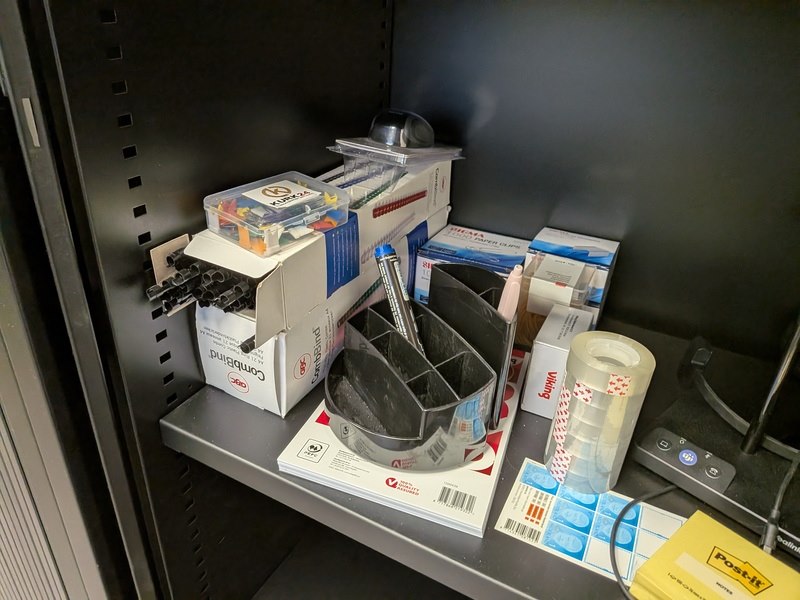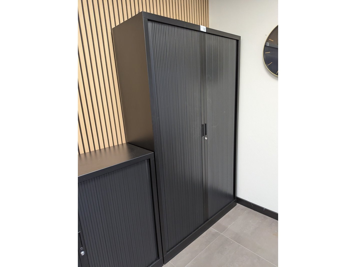 Product: Lameldeurkast met inhoud Afmeting: (hxbxd) ca. 198 x 120 x 43 cm Conditie: gebruikt Specificaties: Inhoud bestaande uit diverse kantoorbenodigdheden Exclusief sleutels