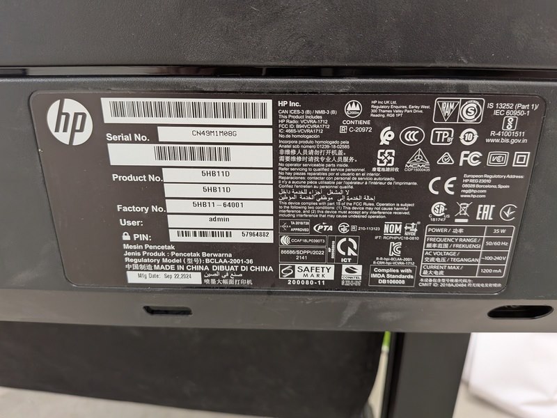 Merk: HP Product: Plotter Afmeting: (lxbxh) ca. 132 x 59 x 93 cm BouwJaar: 2024 Conditie: gebruikt Specificaties: 230, 35W s/n: CN49M1M08G