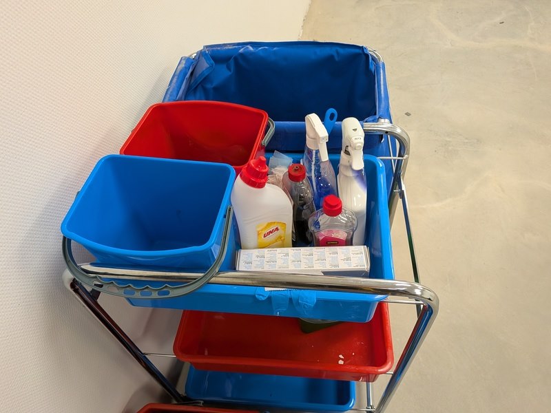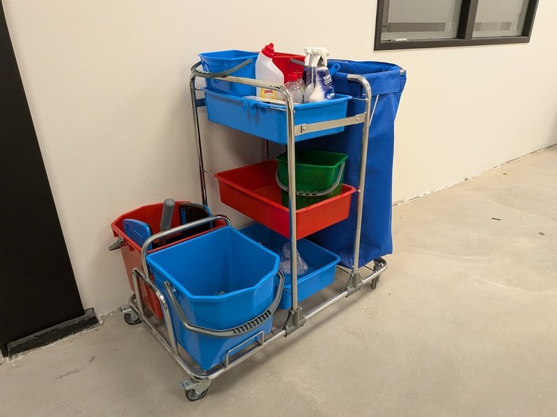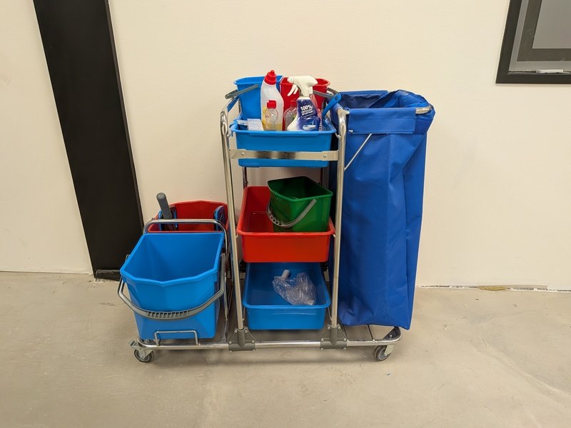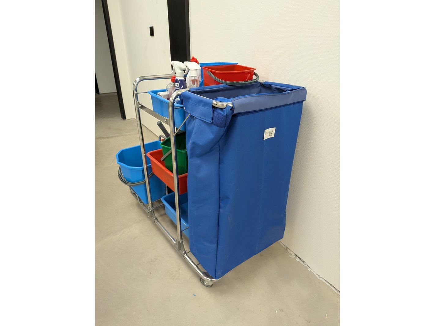 Product: Schoonmaakkar Afmeting: (hxbxd) ca. 96 x 110 x 73 cm Conditie: gebruikt