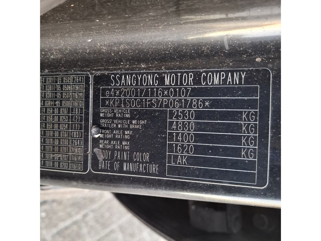 Merk: Ssangyong Product: Personenauto BouwJaar: 2007 Conditie: gebruikt Specificaties: Kenteken: 30-XP-FN Eerste toelating nationaal: 13-08-2007 APK vervaldatum: 07-11-2025 Brandstof: Diesel Afgelezen tellerstand: 306.234 Transmissie: Automatisch Aantal sleutels: 1 VIN nummer: KPTS0C1FS7P061786 Start: Opties e.d. Elektrische ramen/spiegels Lederen bekleding Stuurbediening Waargenomen gebreken Gebruikssporen rondom