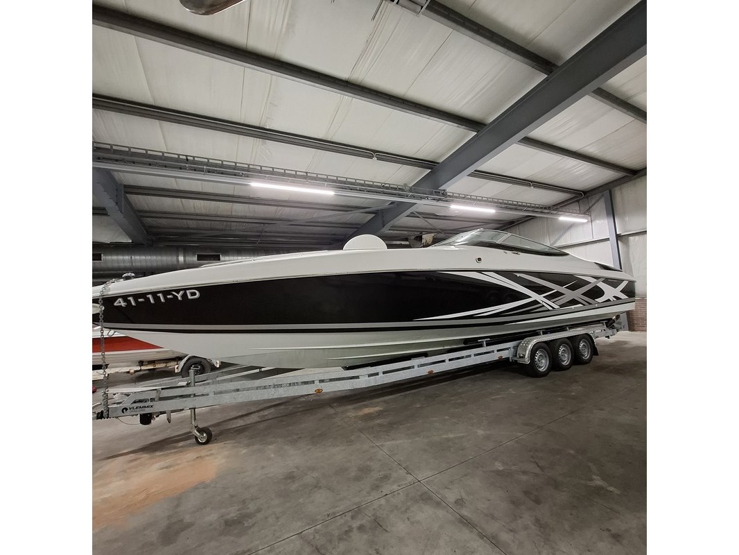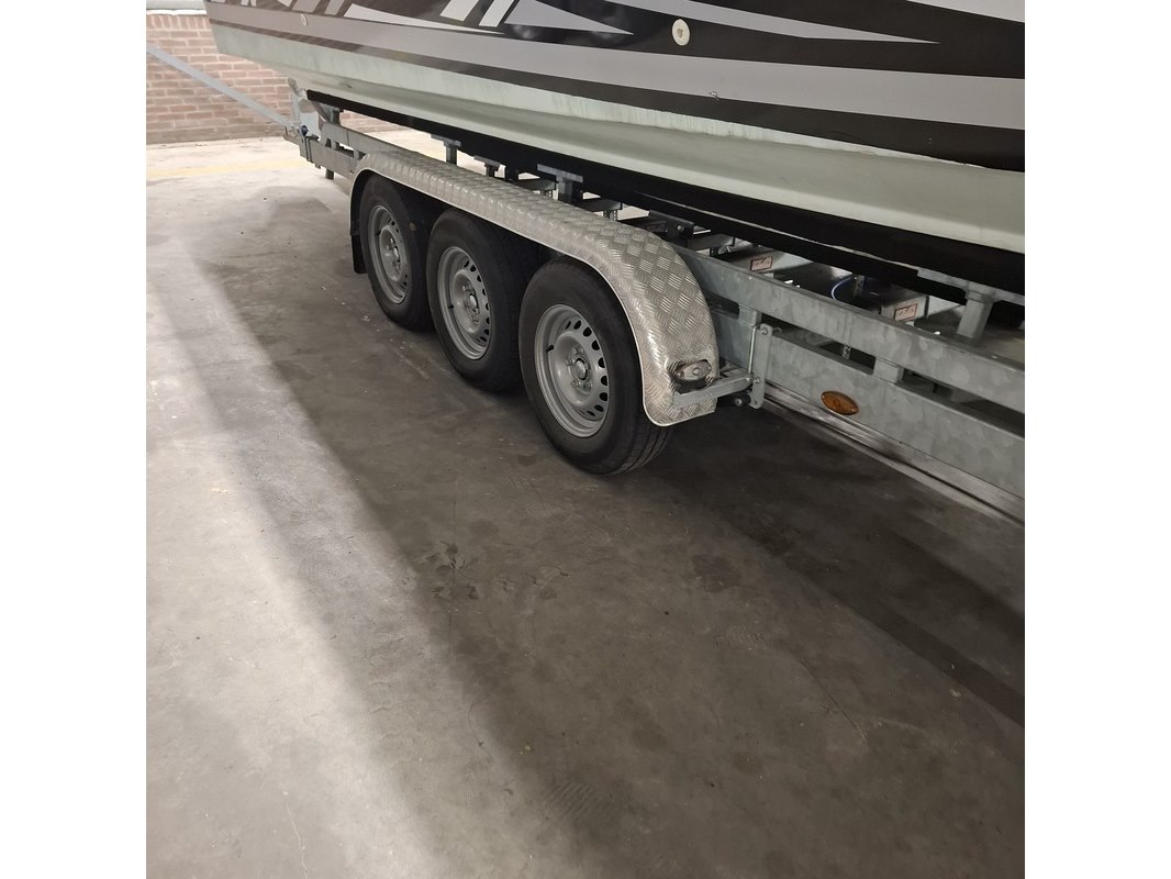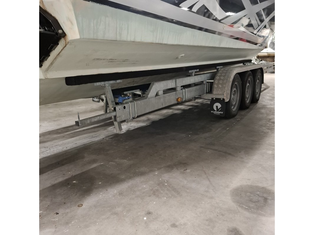 Merk: Baja Product: Speedboot met trailer Conditie: gebruikt Specificaties: Speedboot Kenteken: 41-11-YD Brandstof: Benzine Transmissie: Niet van toepassing Aantal sleutels: 2 (1 per motor) Rompnummer: AGCA2319L495 Start: Nee Opties e.d. 2x MerCruiser 454 Magnum Interne tank Radio Afgelezen urenstand: 575 Bank voorin de punt 1x bestuurdersstoel en 1x passagiersstoel Dieptemeter Kussens t.b.v. zonnedek achterop ontbreken Trailer Merk Vlemmix Type: VBT35-3 Kenteken: 33-WLG-2 VIN: XRUV3A00024000331 Uitgerust met drie assen.