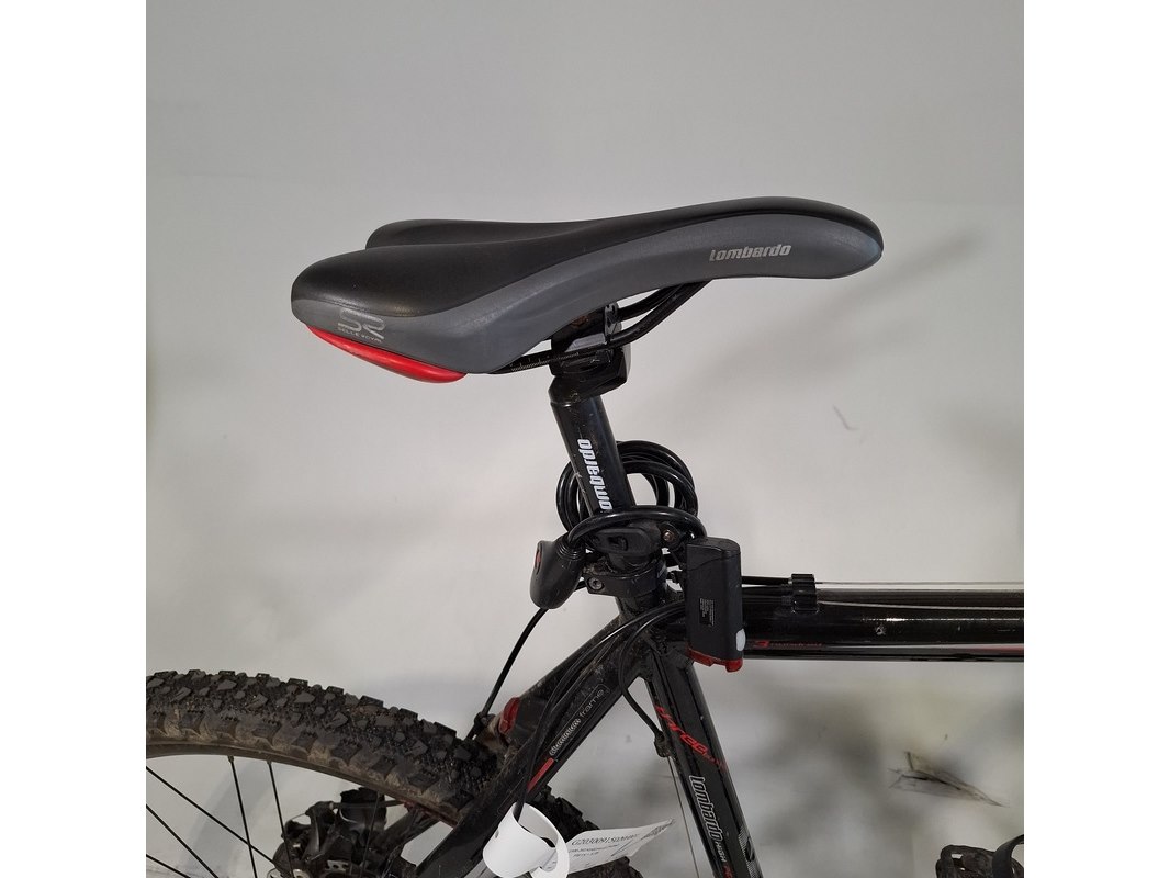 Merk: Lombardo Product: Mountainbike Afmeting: Framemaat ca. 53 cm. Conditie: Gebruikt Specificaties: 28 inch 3x7 versnellingen Geveerde voorvork Inclusief schijfremmen Met kettingslot Exclusief sleutels.