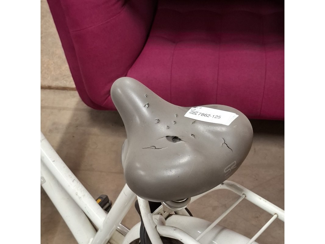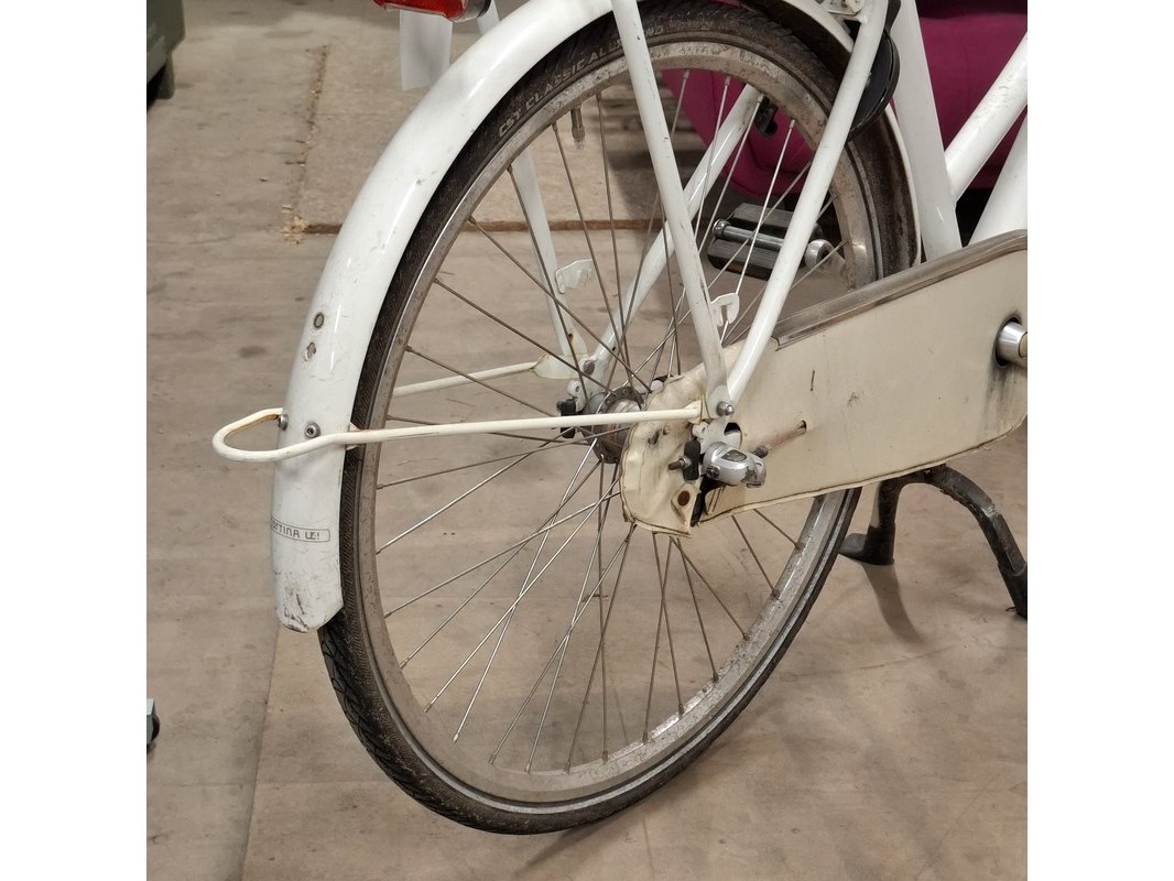 Merk: Cortina Product: Dames transportfiets Afmeting: Framemaat ca. 51 cm Conditie: Gebruikt Specificaties: Wielmaat 28 inch 3 versnellingen, afdek kap defect. Met stuurslot en transportrek. Zadel ingescheurd, banden leeg. Rondom beschadigingen en gebruiksporen.