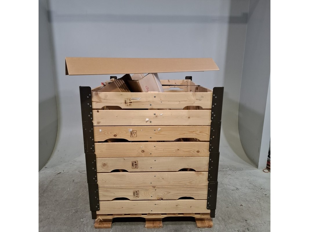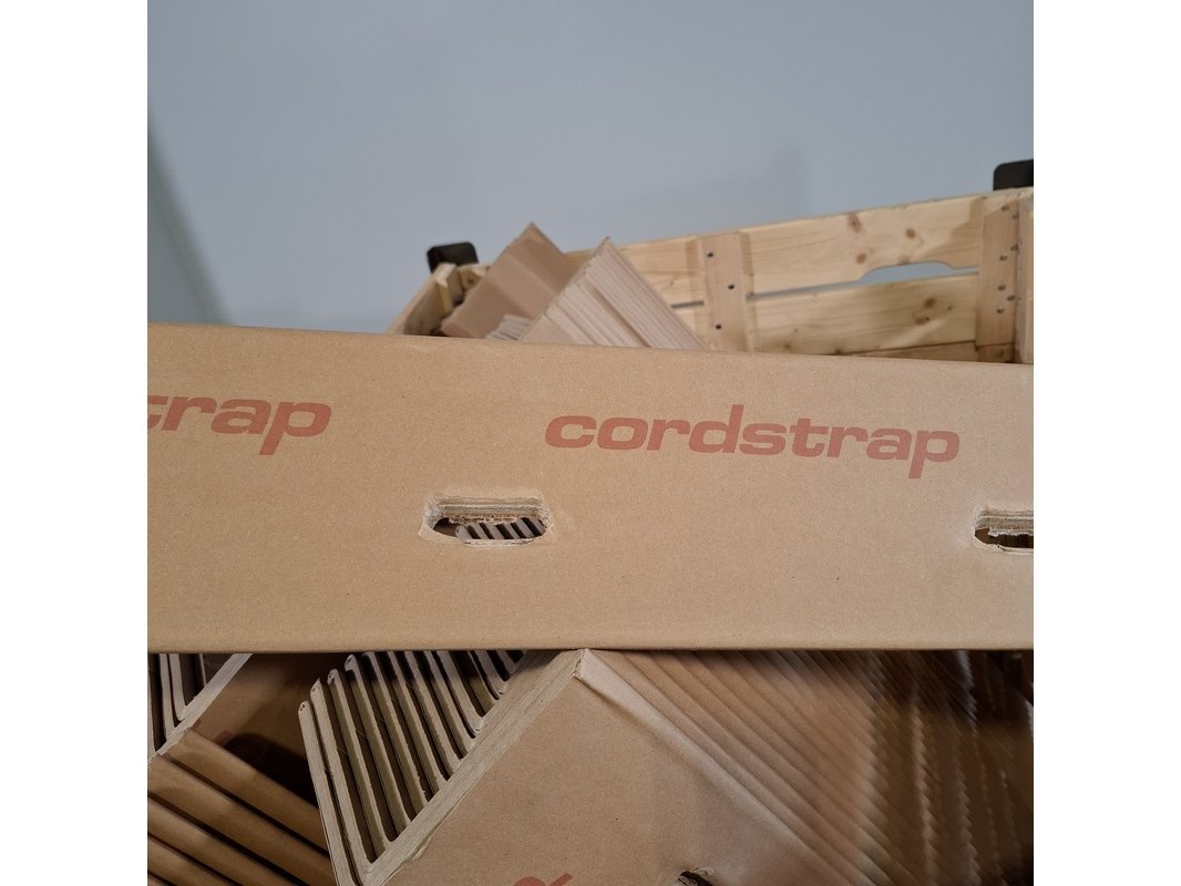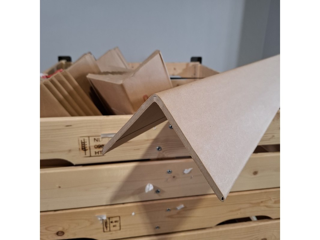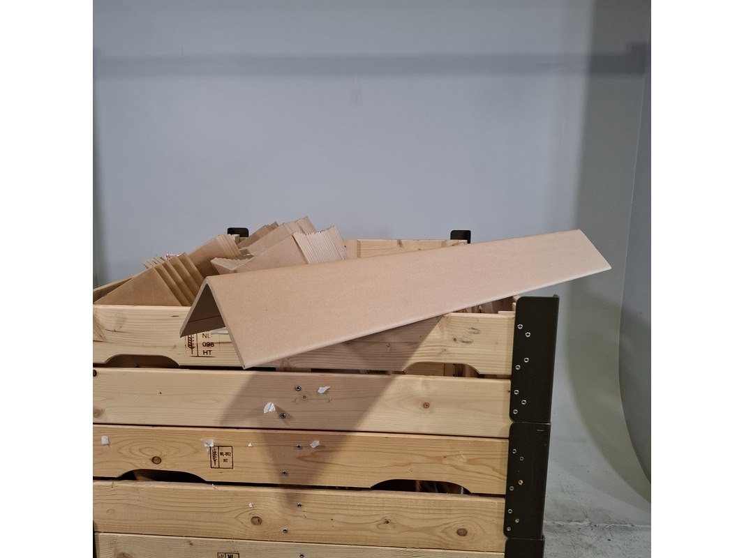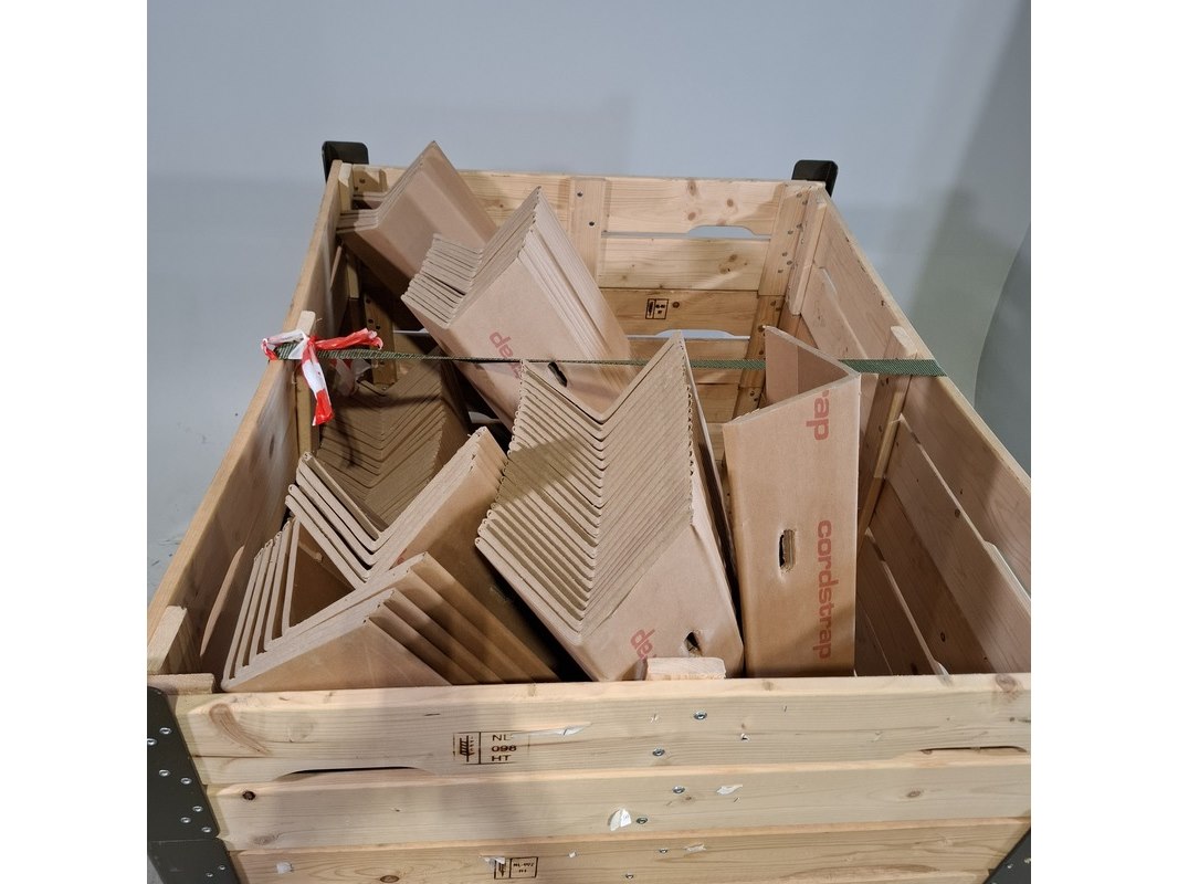 Merk: Cordstrap Product: Partij kartonnen hoekprofielen Afmeting: :engte ca. 120 cm. Conditie: Gebruikt Specificaties: Exclusief palletkist.