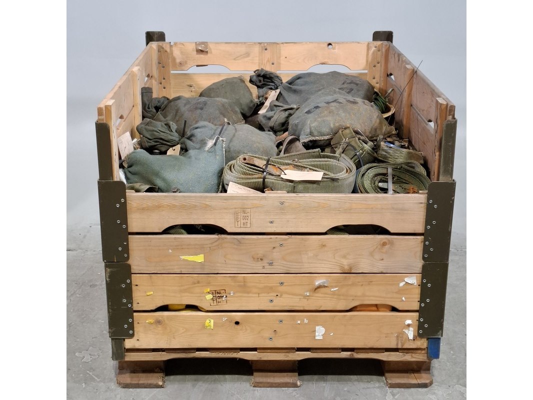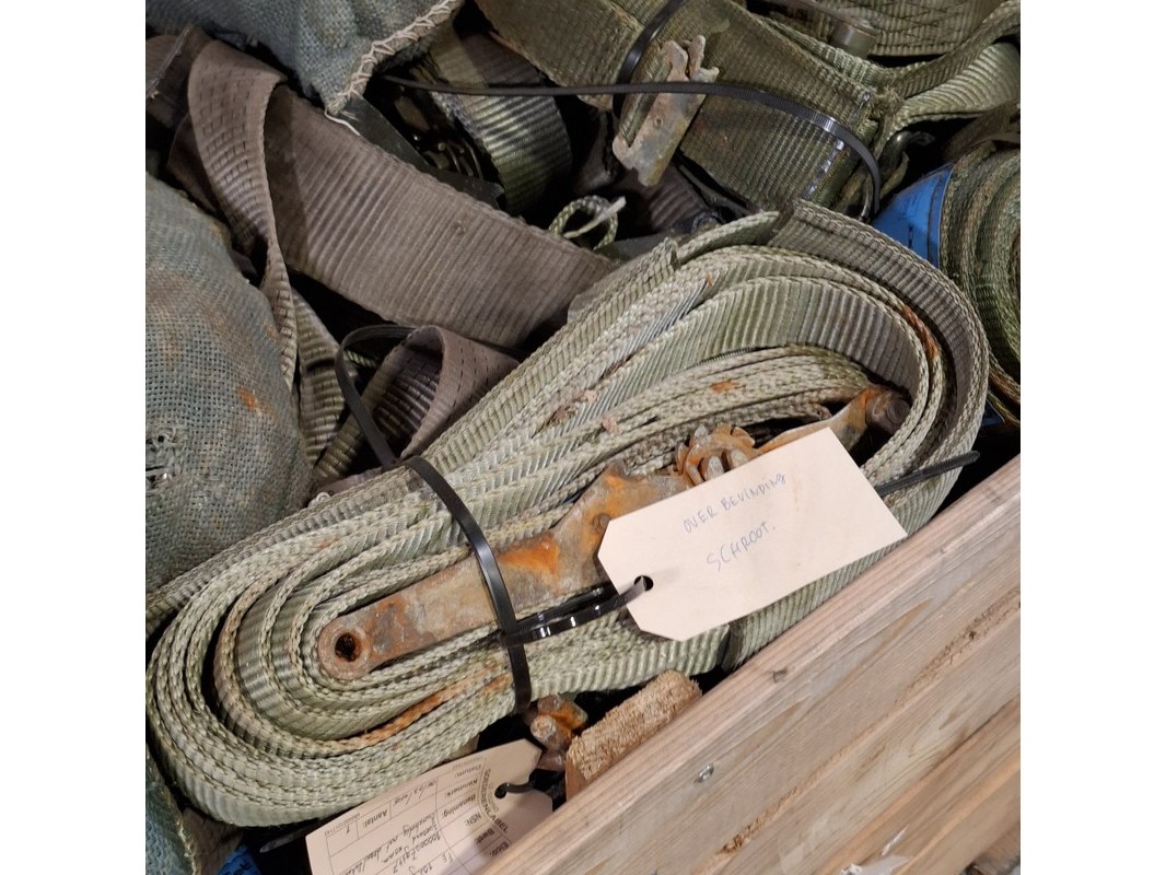 Product: Partij spanbanden en sneeuwkettingen Afmeting: Diverse maten Conditie: Gebruikt Specificaties: De spanbanden en sneeuwkettingen hebben diverse beschadigingen en gebreken. Technische staat en compleetheid onbekend. Exclusief palletkist.
